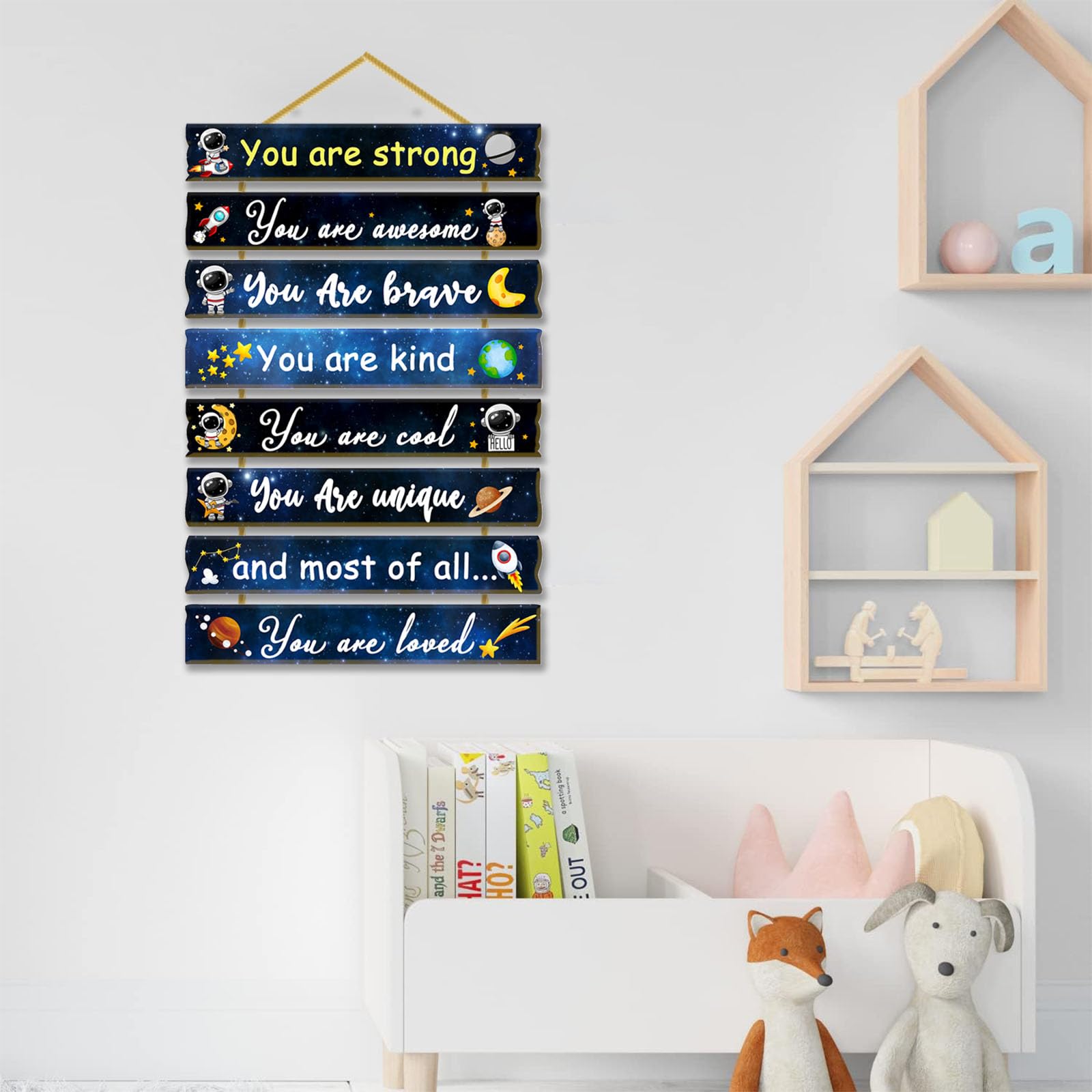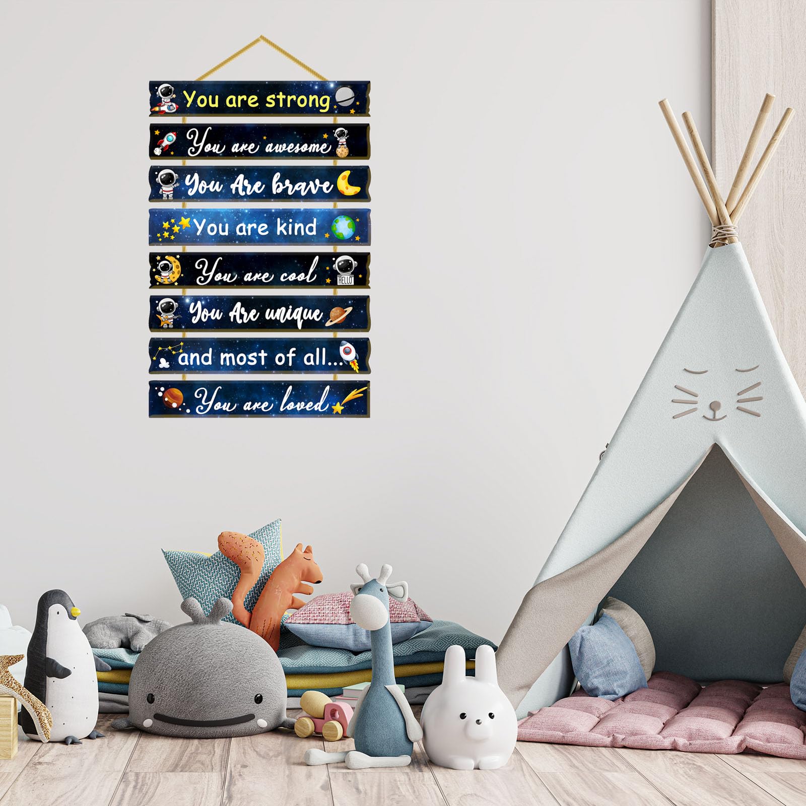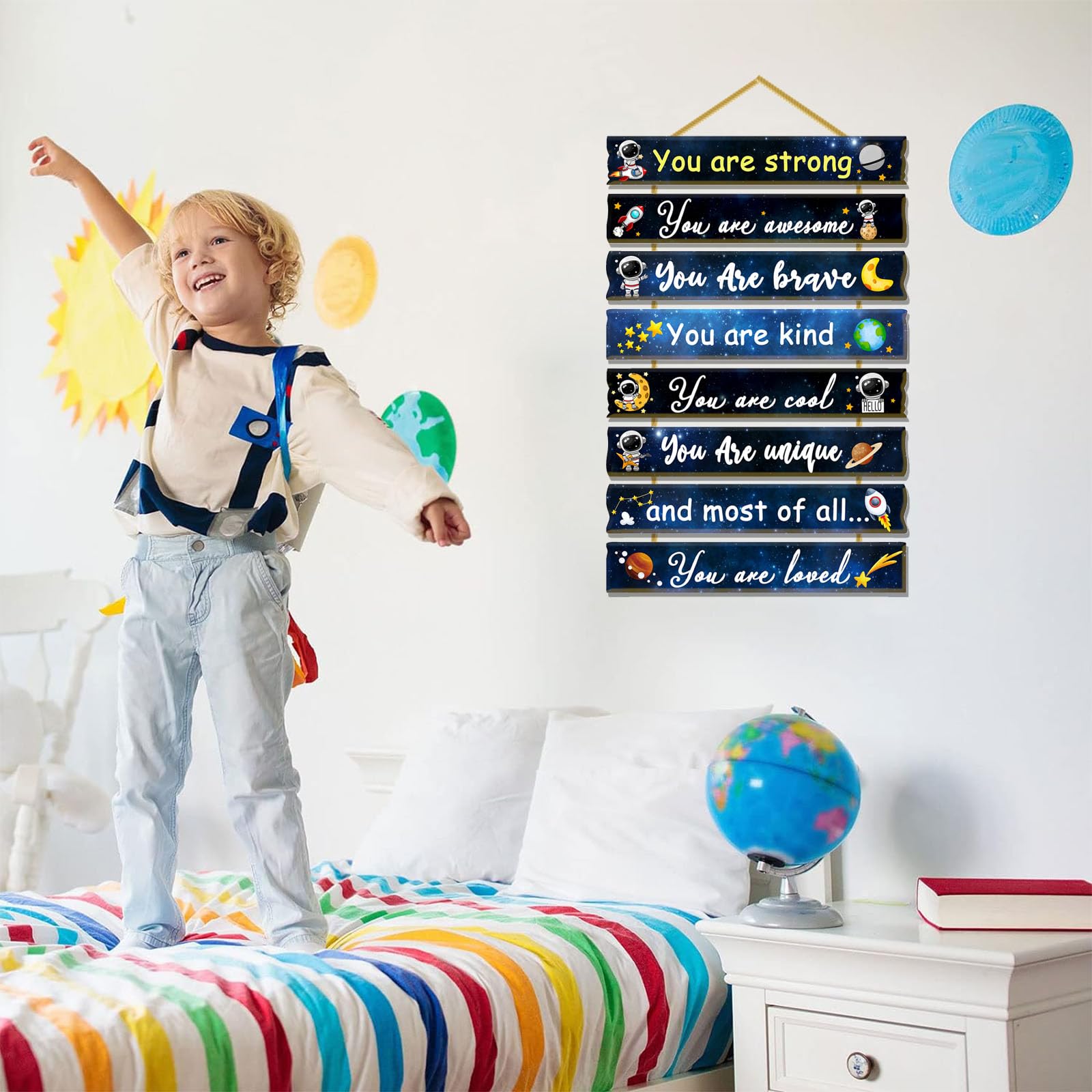 Space Themed Bedroom Wall Decor -- Our outer space wall decor prints with a variety of cute patterns and inspirational words that can boost children's self-confidence, it is a must-have in every kid's room.