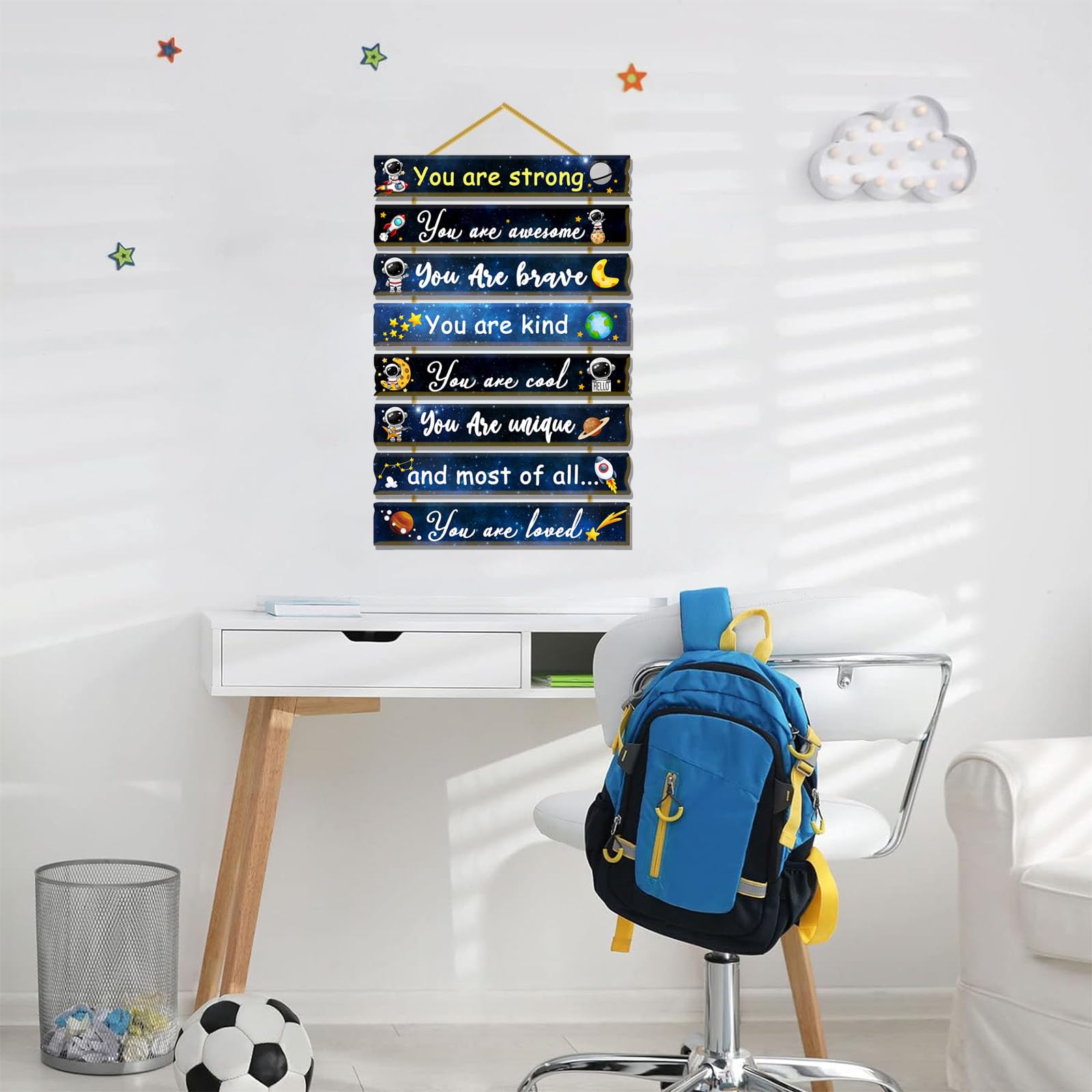 Boys Room Decor -- This inspirational wall decor is composed of 8 pieces of MDF with size of 11.4"*2" and thickness of 0.2",The back is fixed with hemp rope using rivets (not glue that can easily fall off), easy to hang and no need to worry about falling off.