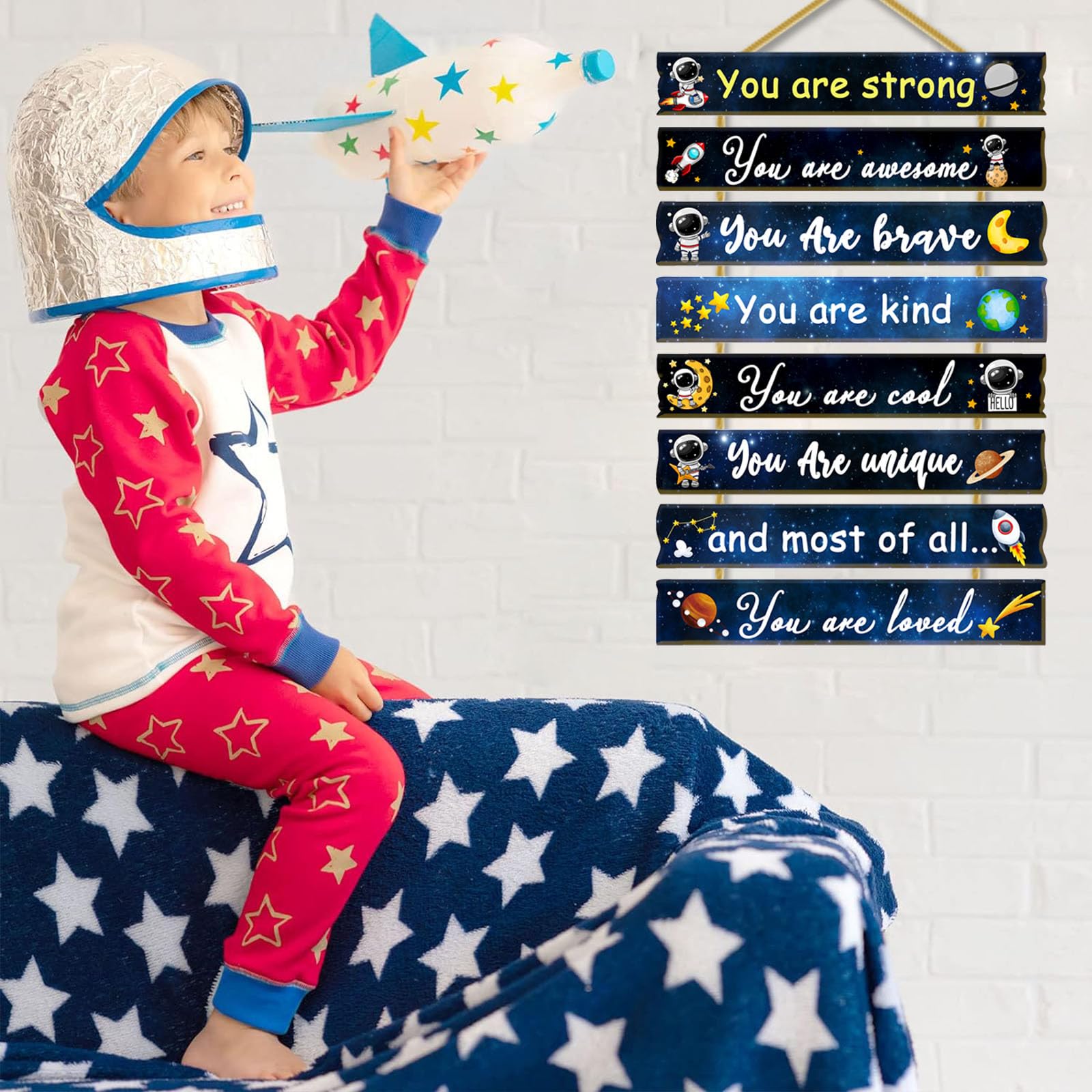 Why Choose Rutiyoka -- Our kids bedroom wall sign made of high quality MDF, compared to plywood, our space decor made of MDF has a smoother surface, no burs, no smell, brighter colors, and more heavy. It must be excellent wall art for kids' room décor.