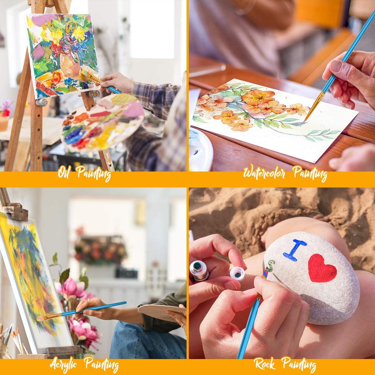 Awesome Set of Paint brushes: Professional paint brushes can cover all of your needs. The multi-purposed brushes are ideal for Watercolor, Oil, Gouache, enamel, Acrylic Painting, Body, Nail, Face Painting, Miniature, Model, Wood, Glass, Cup, Ceramic, Fine work, Art class, Craft Art Painting, DIY Art Crafts etc.