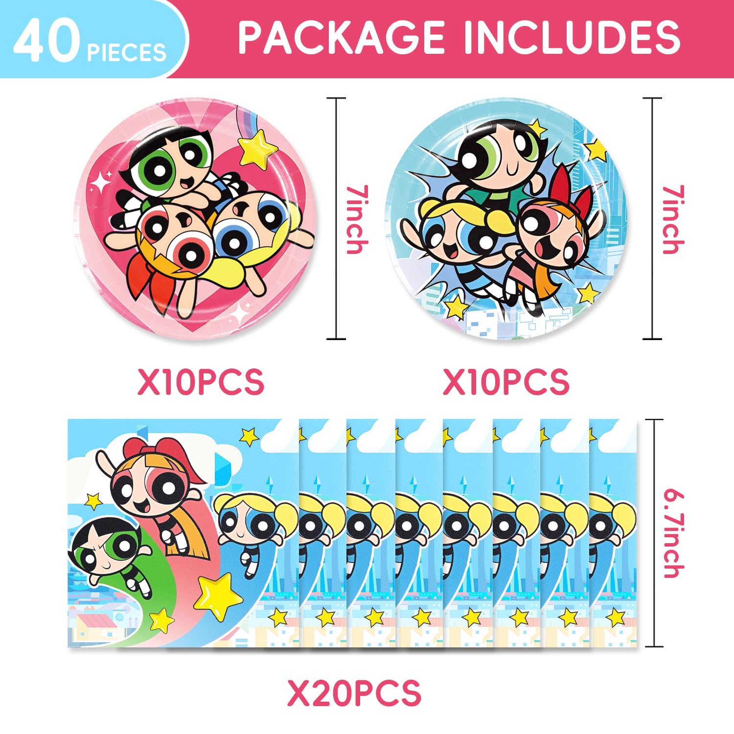 Package includes: Girls 20 pcs 7inch 20 pcs paper towel for the Girls party