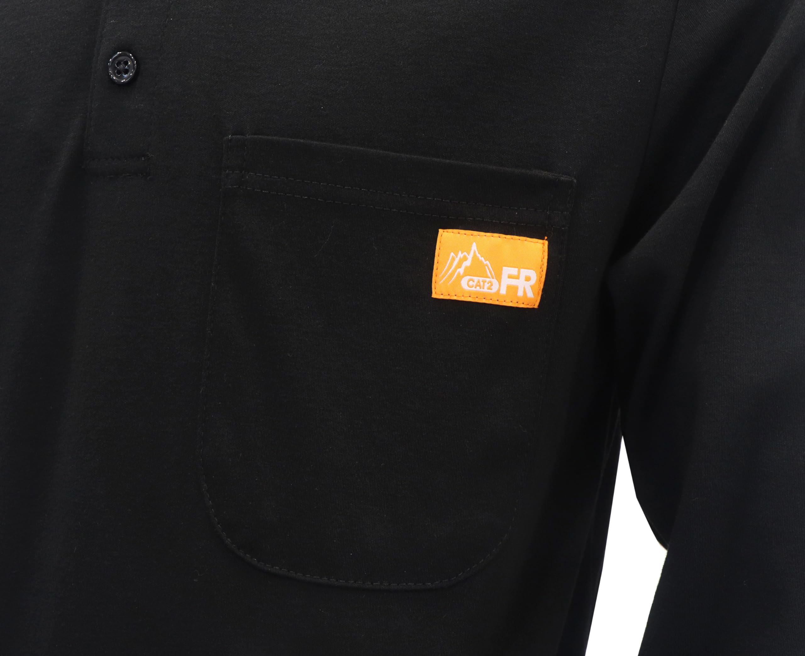 5.5OZ Cotton Knit FR Treated,FR Buttons,FR Sewing Threads!Clear FR Tag on arms and bottom front.