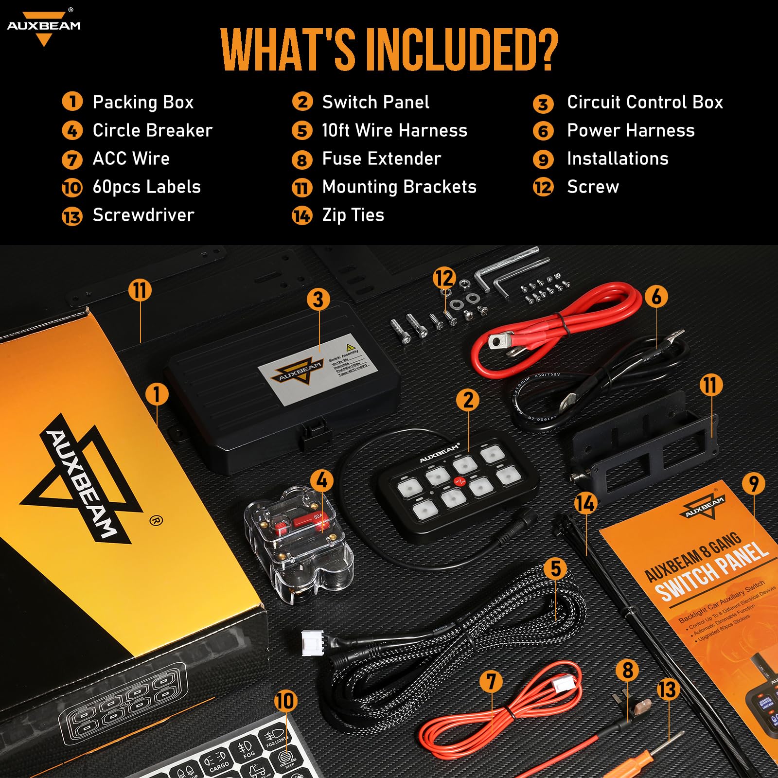 Easy Installation: No complicated wiring, no need to cut a big hole on your vehicle. Plug & play wiring harnesses ensuring you to connect the led lights or accessories easily. Two types of mounting bracket, you can install it anywhere you need. You can customize your personal switch panel with 60pcs self-adhesive labels. The best way to clean up all the wiring and add a single panel to control everything.