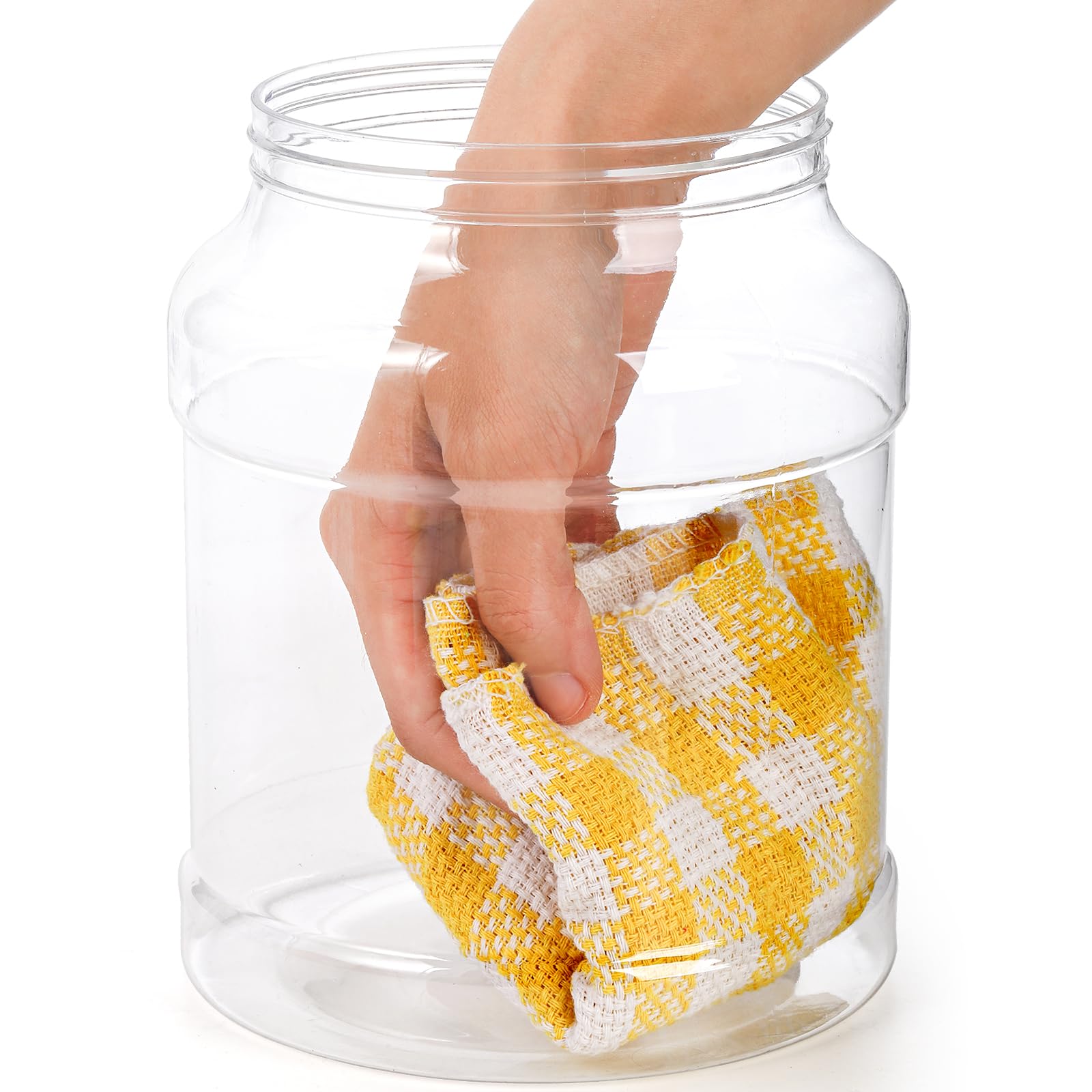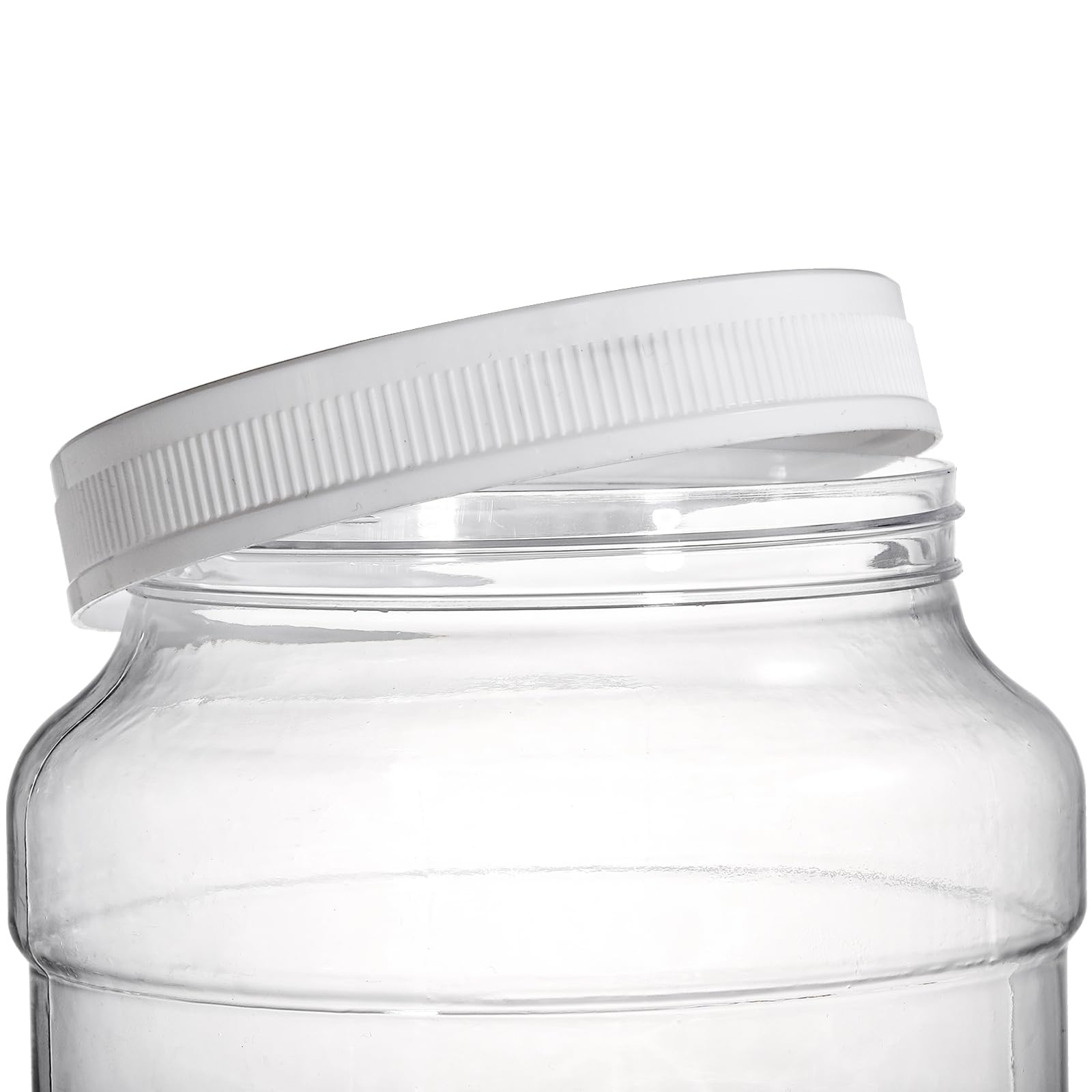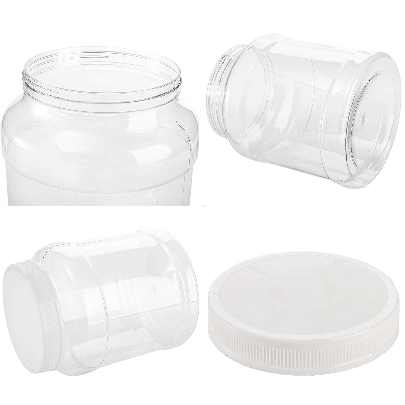 Crystal & Light: Clear plastic body with wide mouth of 4.6 inch mouth diameter offers easy access and light weight. High clarity make sure of what you store in the plastic container, really a great substitute for the fragile glass storage jars that break & crack easily.