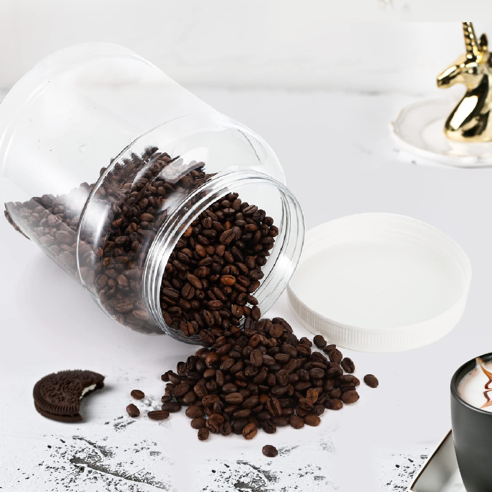 Multi-purpose:Okllen plastic jars with lids are great for grouping goods in your home, kitchen, garage, or bathroom, ideal for salt, cookies, grains, legumes, gel, serum, putty, hair care products, creams or paint, nails, screws, and more, also perfect gifts for mom, wife.