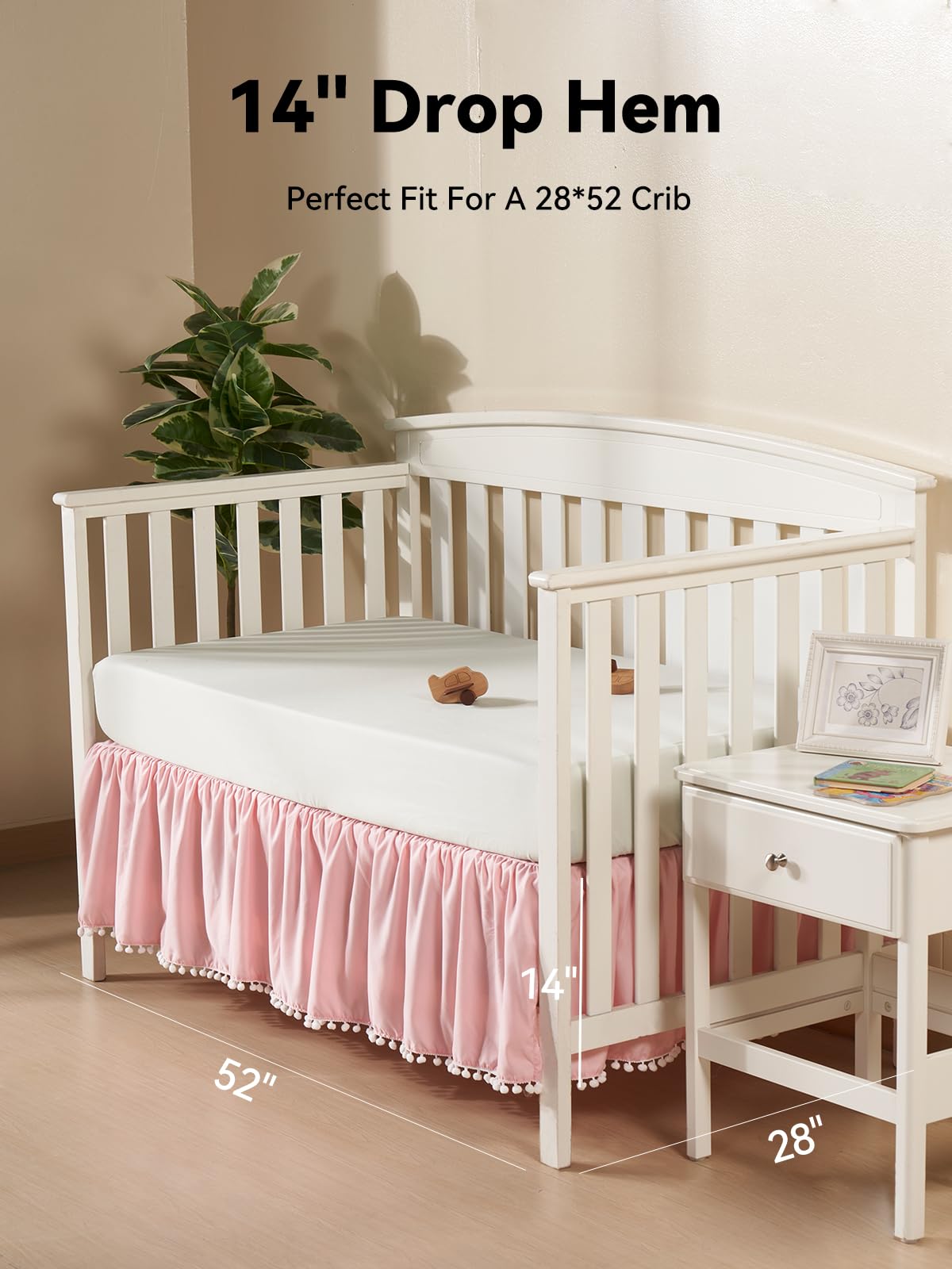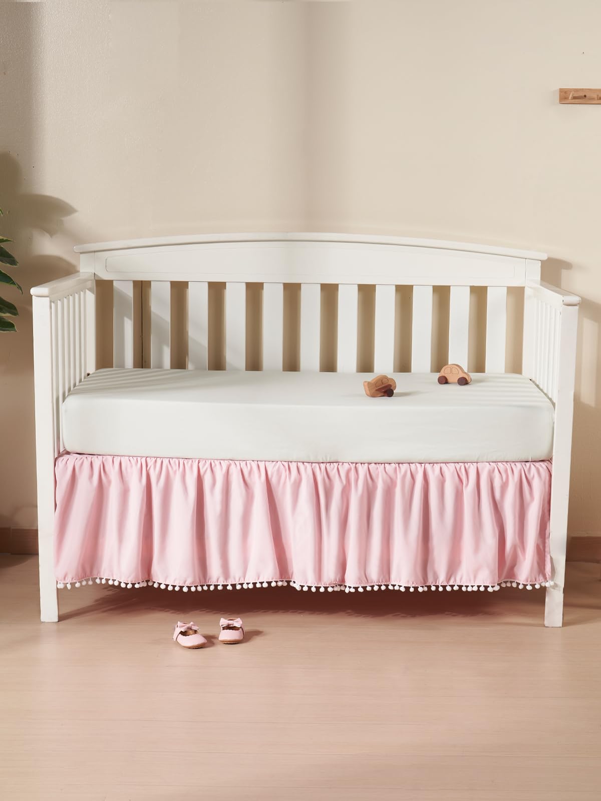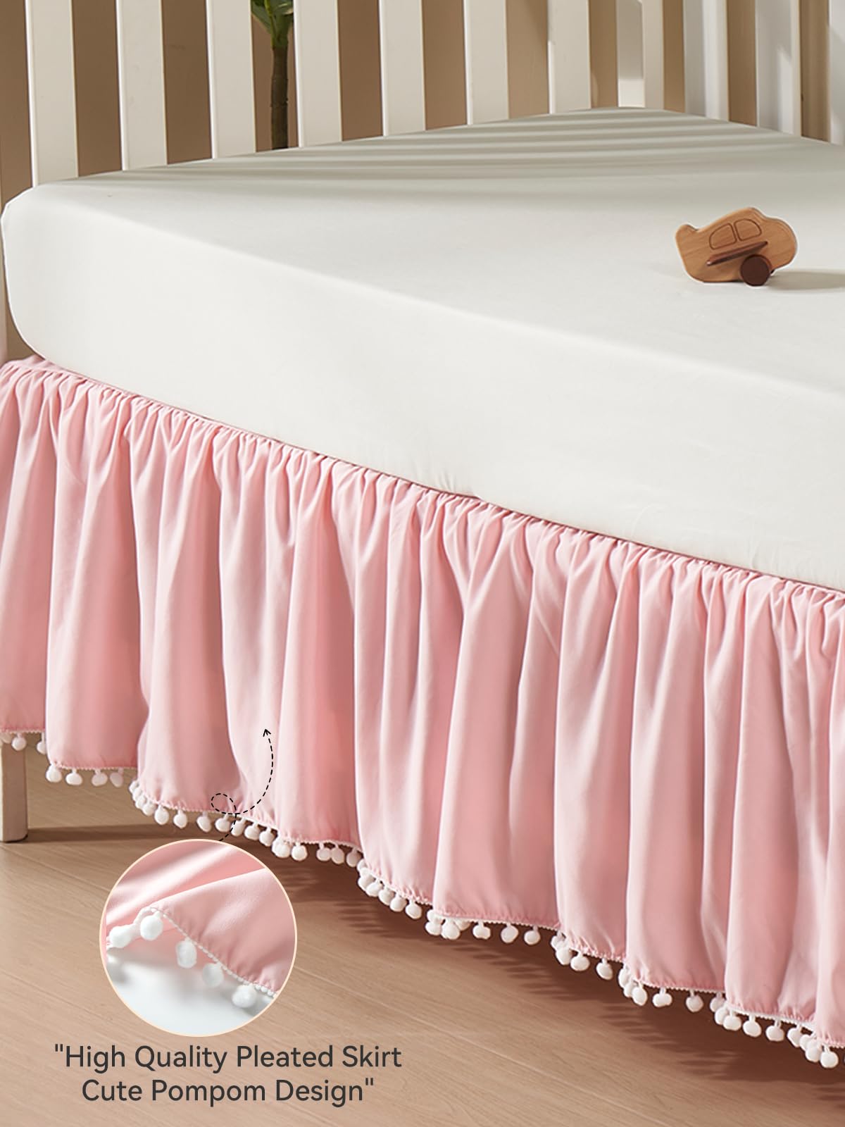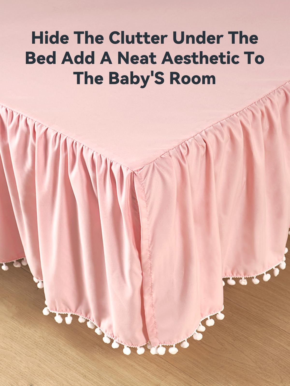 Cute Design: Featuring elegant ruffles with small pompom design, it makes the crib look more cute and charming.