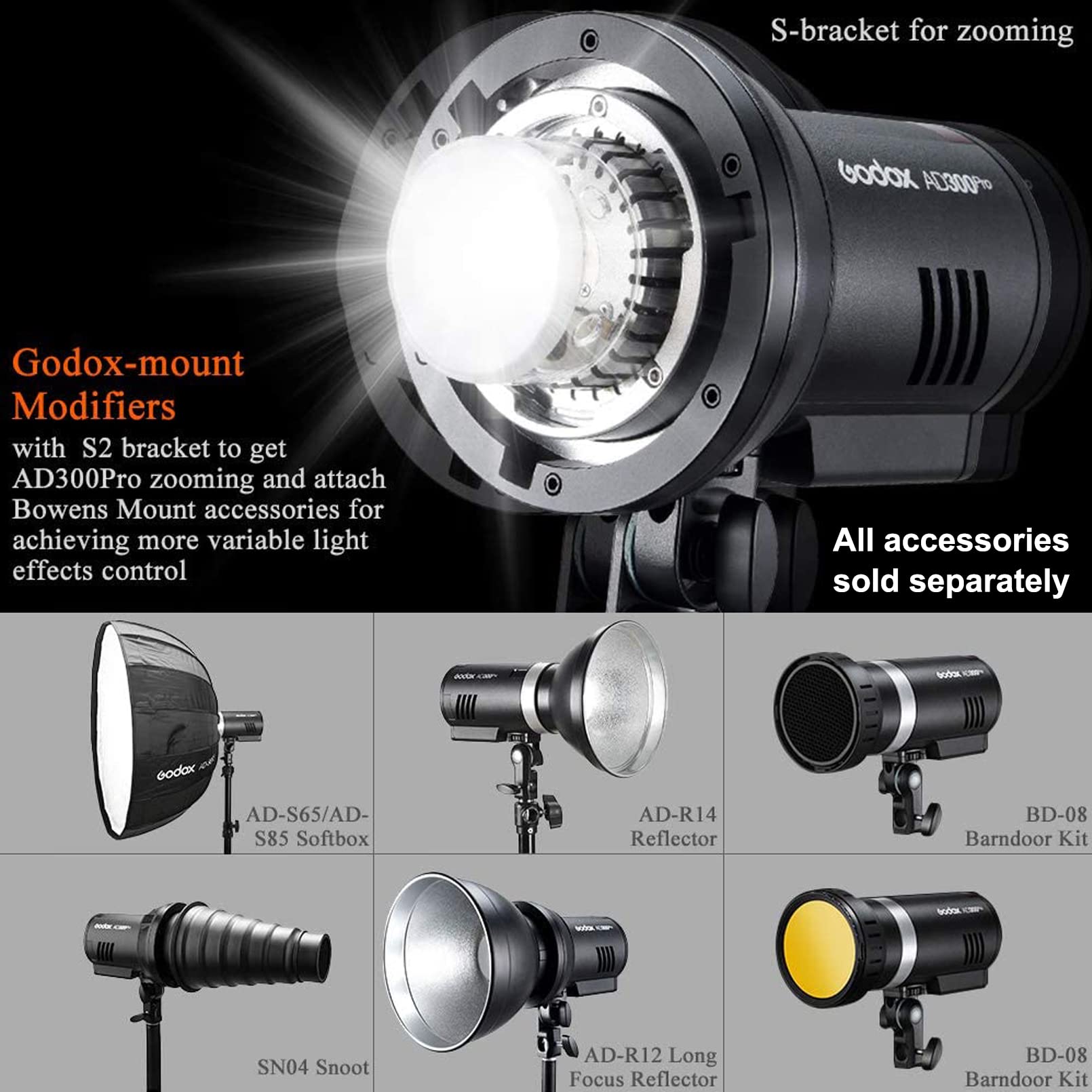 User Friendly Design: Large LCD Panel clearly displays the status of strobes, concise and clear button allow you adjust parameters quickly, so you're always in control of the lighting all the time; Godox-mount design to achieve more light effects; Use with S2 bracket(Sold Separately) to attach bowens mount accessories