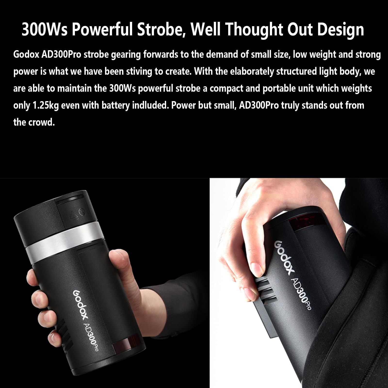 Great Compatibility: Godox Flash AD300 Pro compatible for Canon, Nikon, Sony, FUJIFILM, Olympus and Panasonic TTL Autoflash System. With master/slave function, the strobe light can be used in combination with Godox TTL camera flashes, TTL outdoor flashes, etc