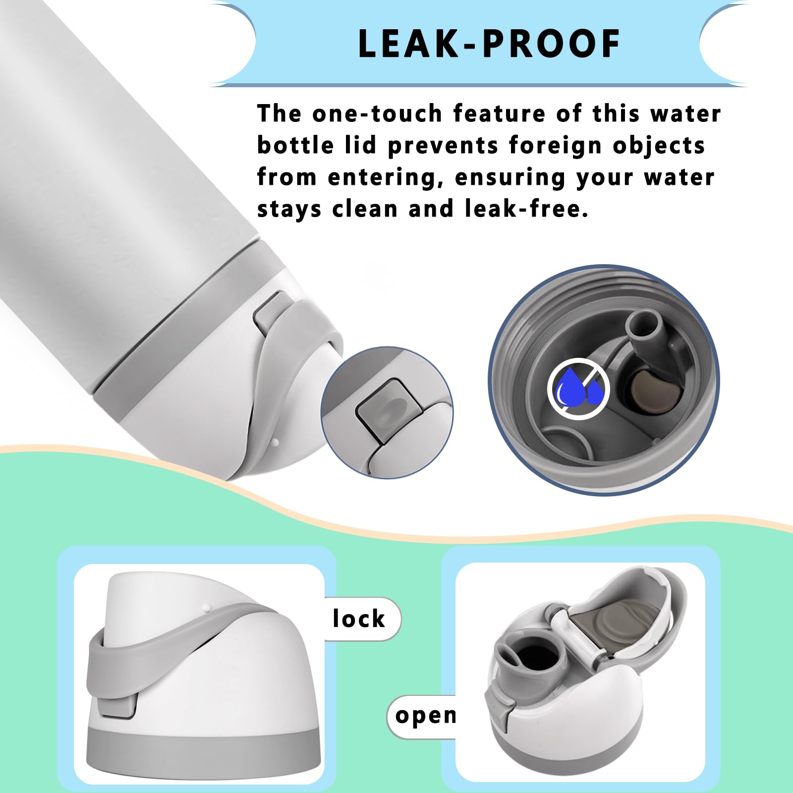 【One-Button Operation】The user-friendly one-button design allows easy opening and closing, catering to a variety of scenarios, whether at the gym, in the office, or outdoors. Perfect for any compatible with Owala lid replacement, this lid keeps your hydration routine effortless and convenient, whether using your for Owala cap on your 32 oz or 46 oz water bottle.