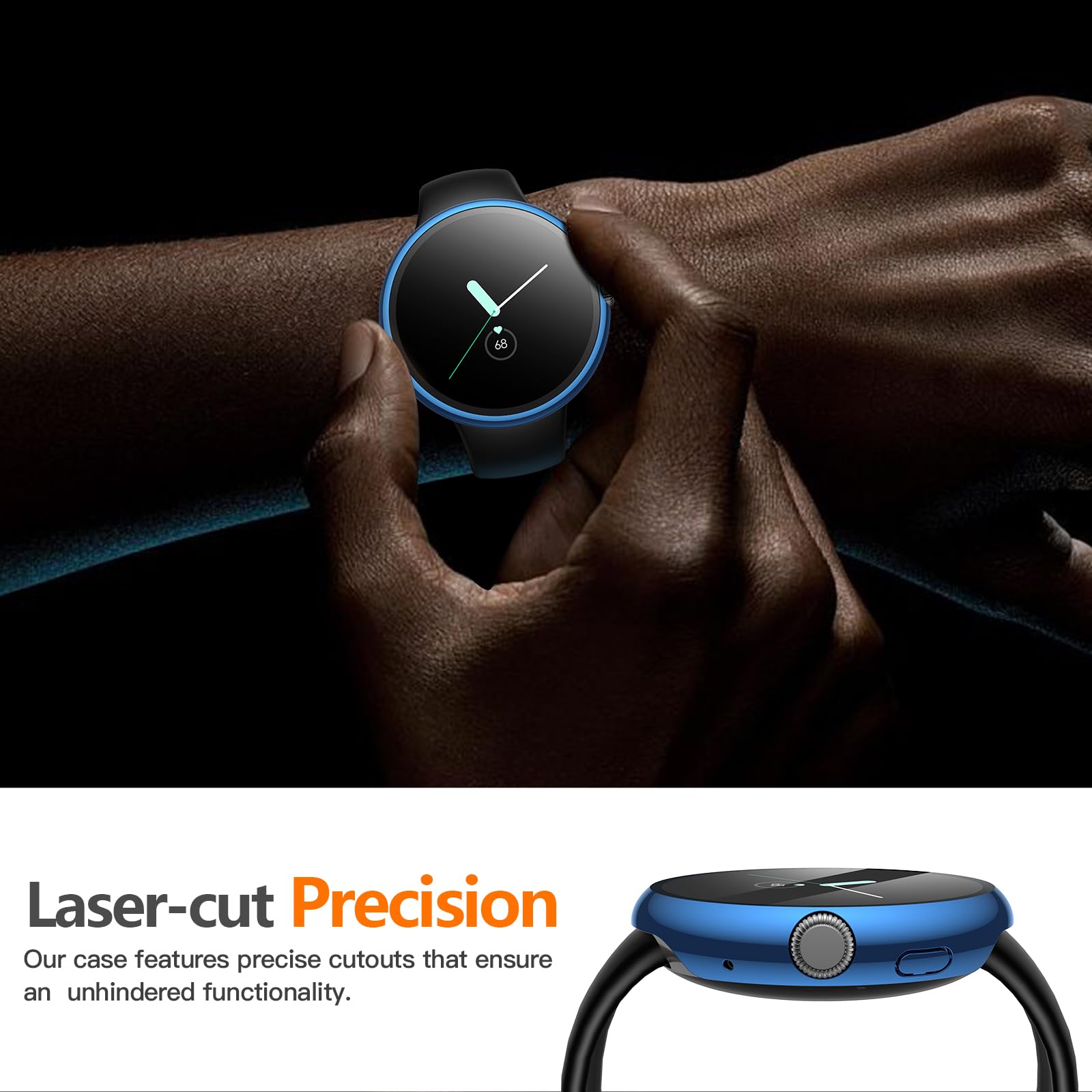 360°Protection: This all-inclusive case features a premium hard PC frame and an ultra-thin tempered glass screen protector, the super strong 2-in-1 design fully protects your Google watch screen and curved edges from dust and fingerprints.