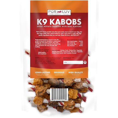 Packed with Flavor: The Pur Luv Triple Flavor and Sweet Potato K9 kabobs dog treats pack three delicious flavors into a single treat