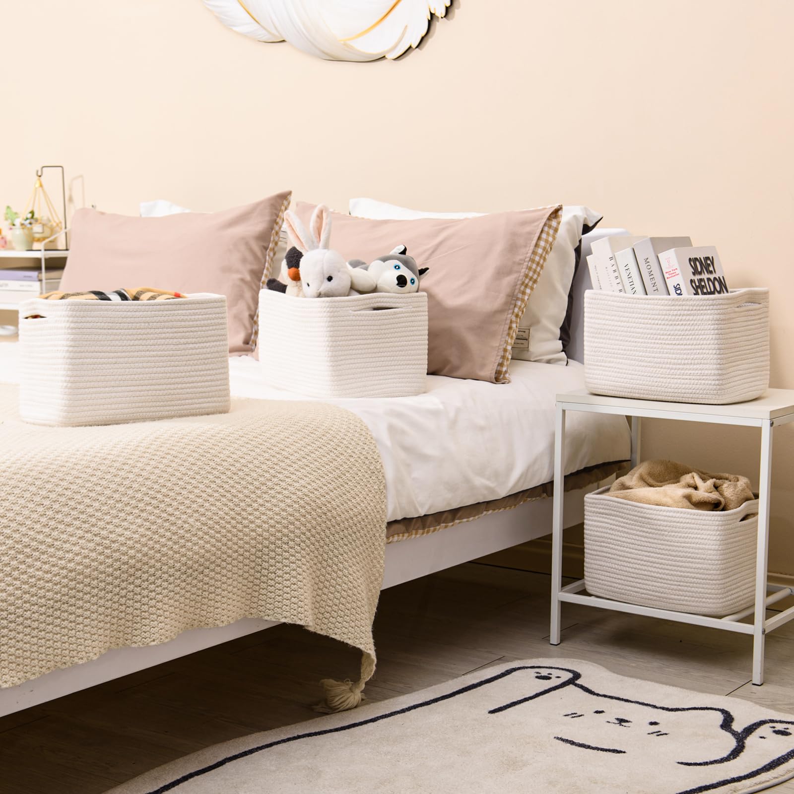 SPACE SAVING SOLUTION: ICERZCZ 4 Pack cotton rope basket compact size and nice storage capacity will help you maximize available space while keeping your belongings organized and easily accessible at all times
