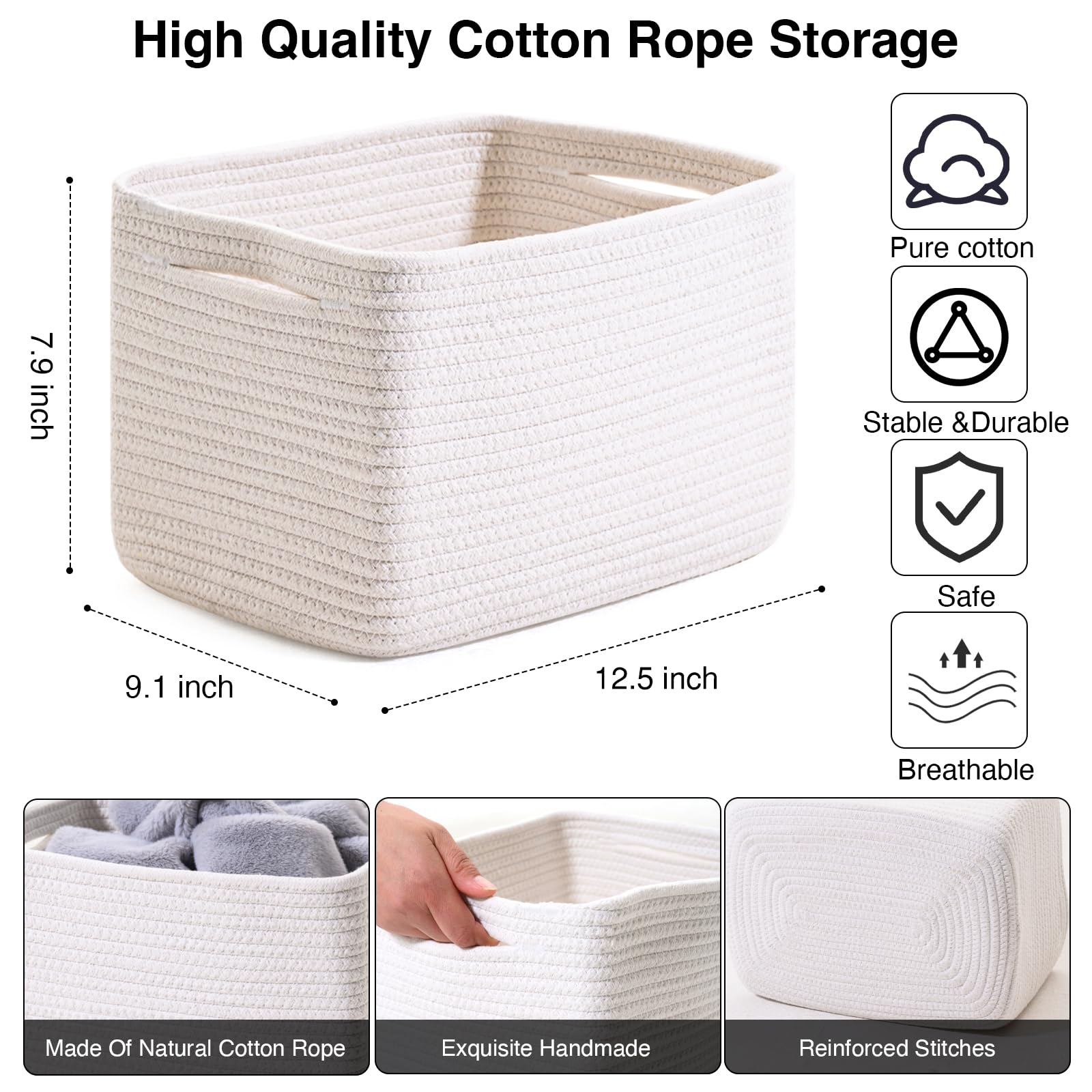 MULTIPURPOSE CUBE STORAGE BASKETS: Ready to display and organize your desks and tables, racks, shelves, dressers, and closets while adding a nice touch to your home decor?Use the ICERZCZ small storage baskets can make your home more tidy. Designed to fit on shelves, in closets, and even under beds, these cotton rope baskets are ideal for organizing your home or office
