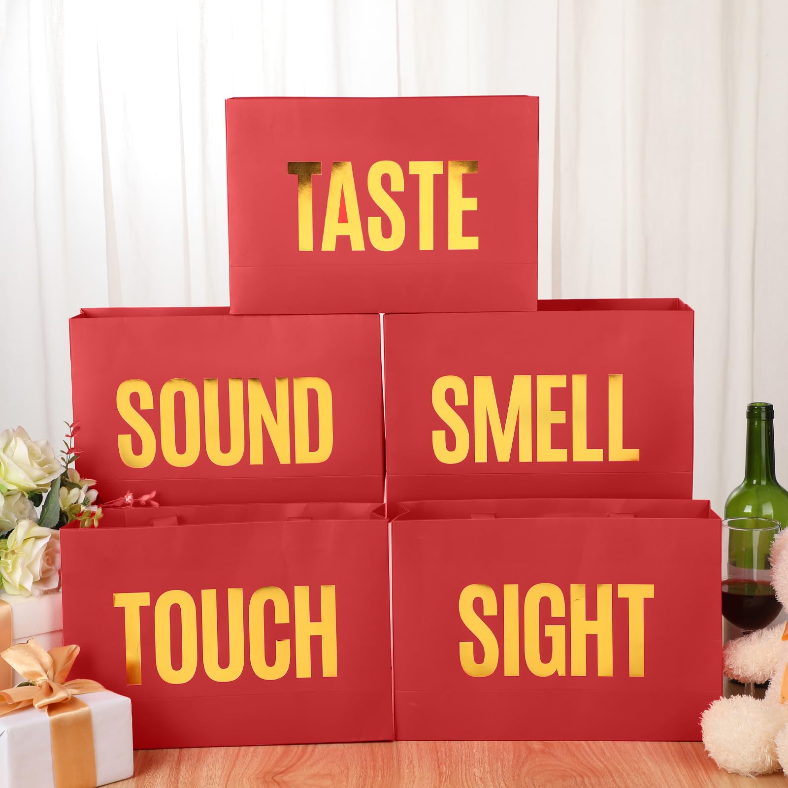 Graceful: the sight smell touch taste sound gift bags are designed with a striking color to add elegance and sophistication to your gifts; Whether it's birthday, Valentine's Day, or an anniversary, these gift bags give an upscale feel to your presents