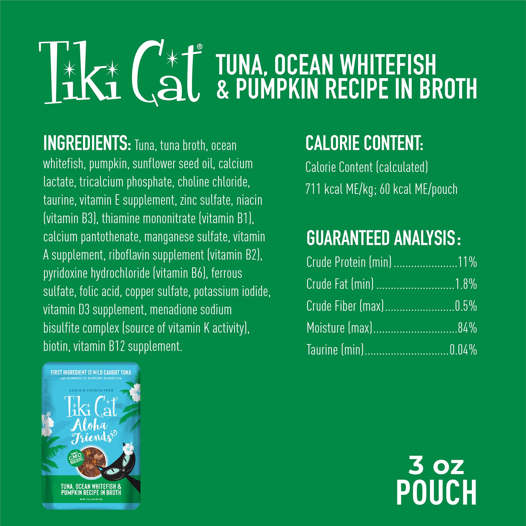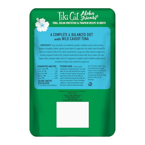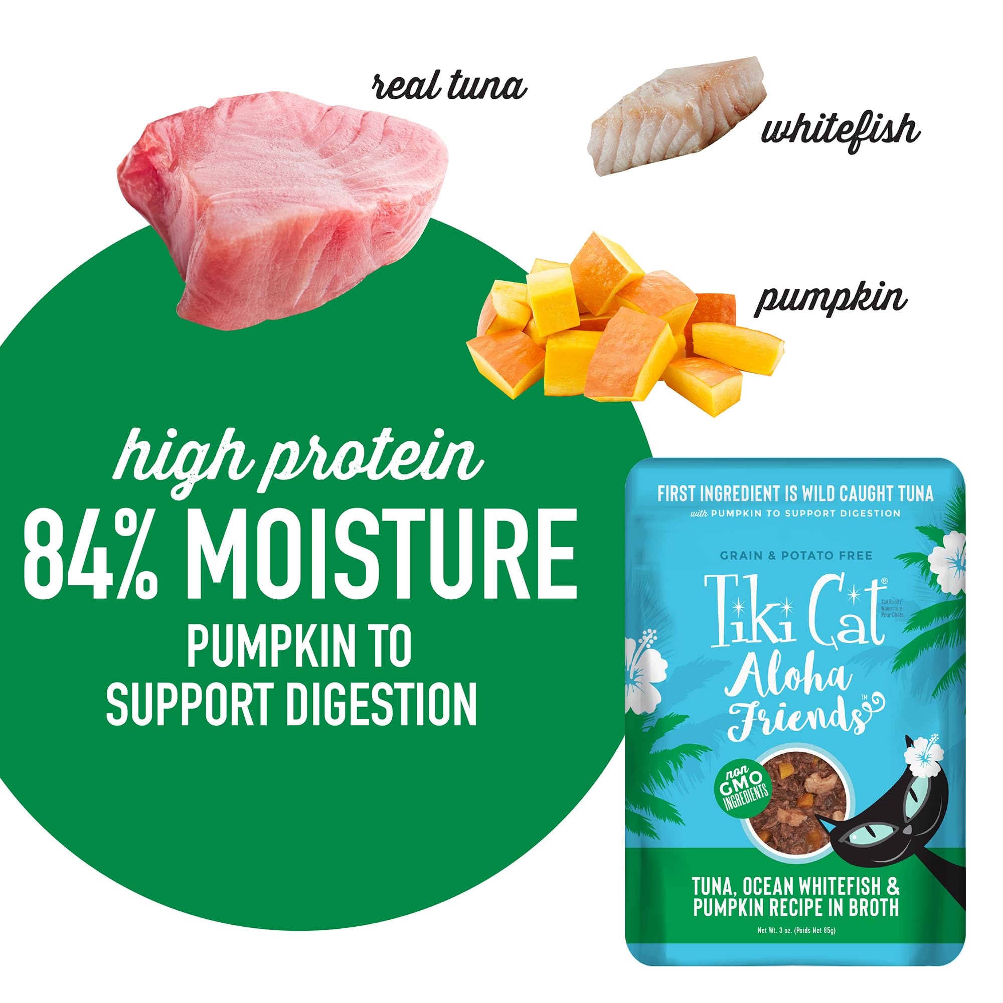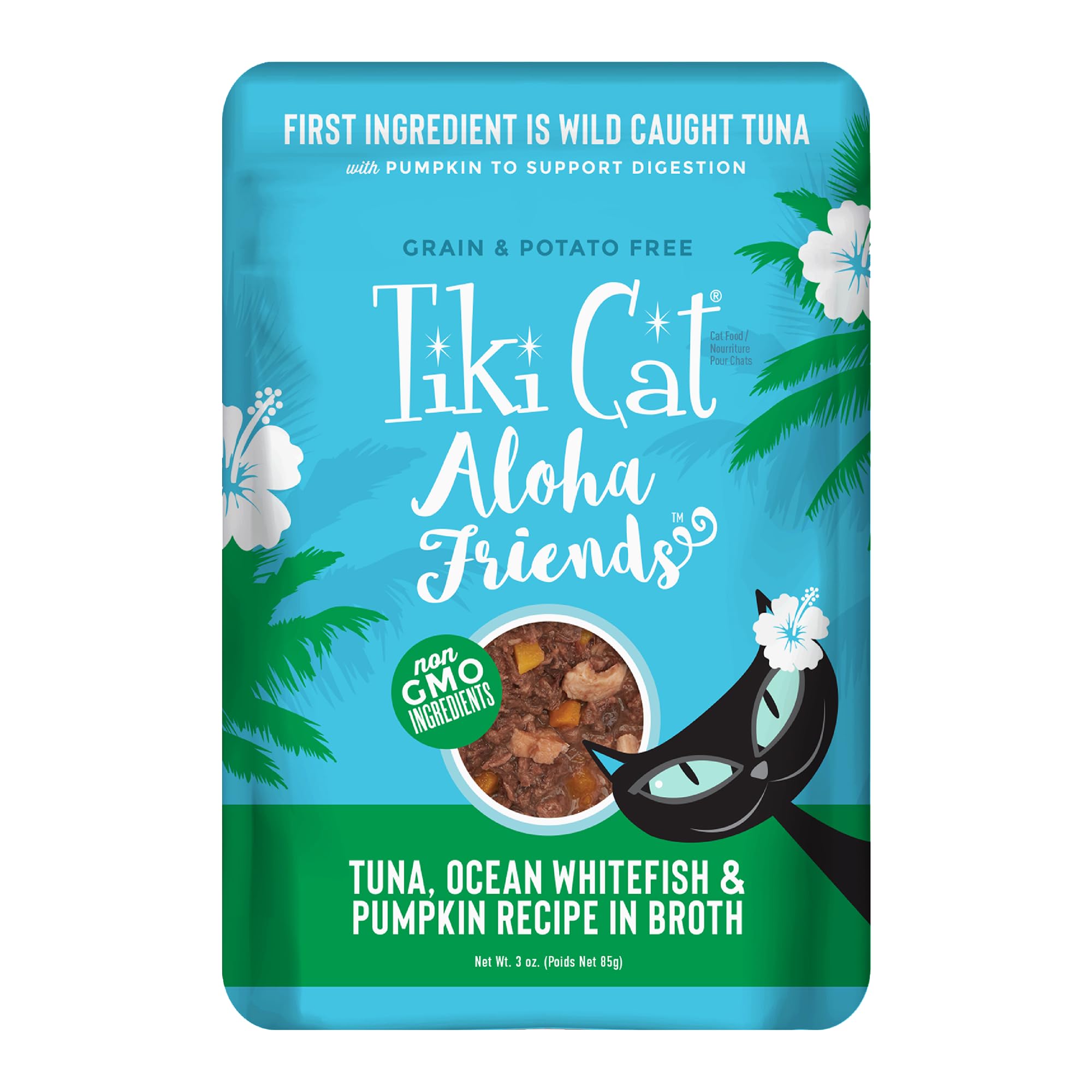 Tiki Cat Aloha Friends Wet Cat Food is delicious meals with real tuna and easy-to-digest pumpkin, combined with flavorful fish or seafood.