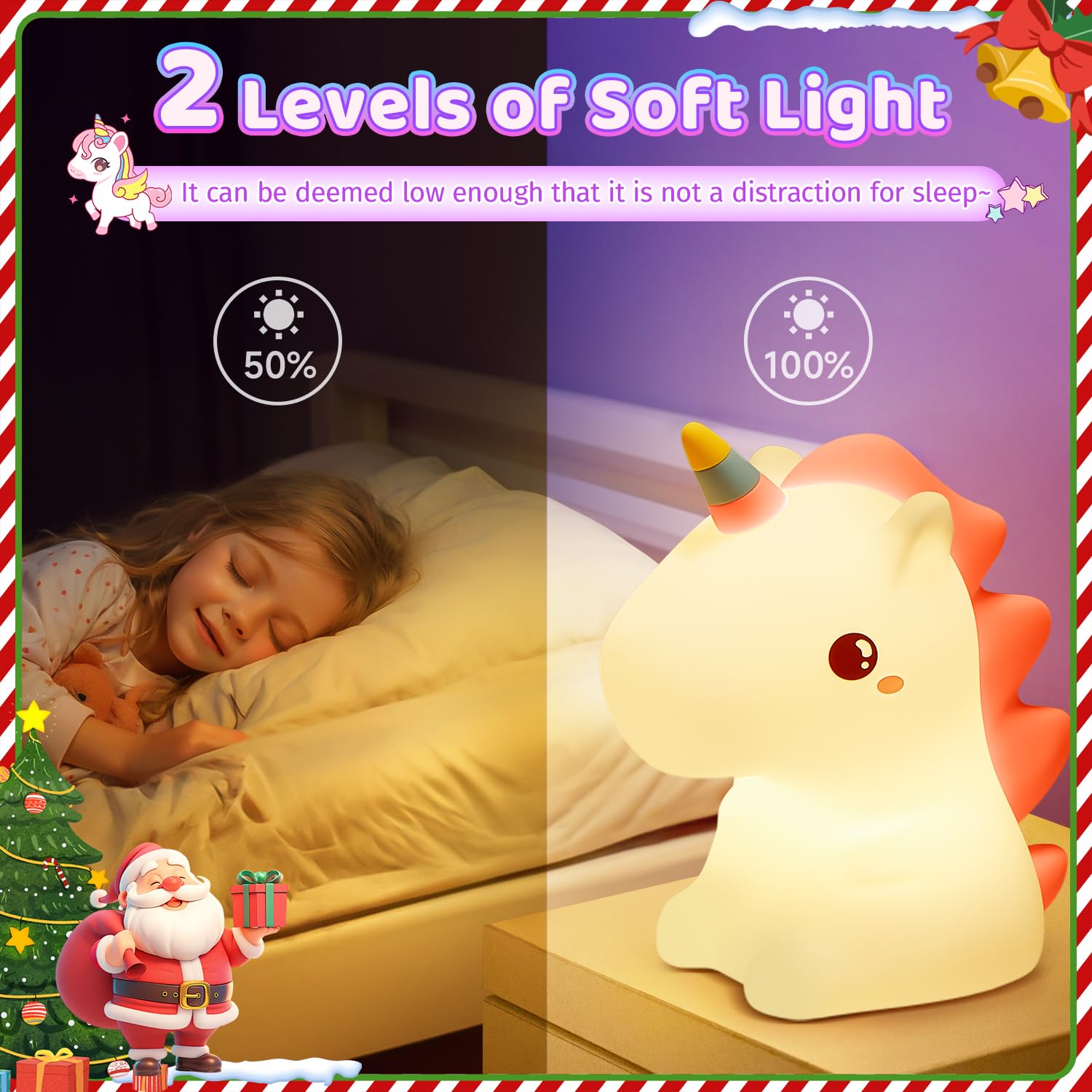 🦄DIMMABLE & EYES-CARING NIGHT LIGHT FOR KIDS: Unicorn dimmable night light for kids has 2 brightness levels: 50% & 100%. 50% Brightness-can be used as a toddler night light/kids night light for sleep, low brightness that it is not a distraction for sleep.100% Brightness-bright enough for go to bathroom in the middle of the night or baby nursery, breastfeeding. U can adjust the brightness by tapping the kids night light for kids & unicorn toys for girls age 4-6, how easy and fun to use! Dimmable night light for kids lamp has soft,soothing glow that won't harm yr little one's precious eyes! Kids night light for kids lamp, soothe baby emotions,keep nightmares away & guard yr kids every night.