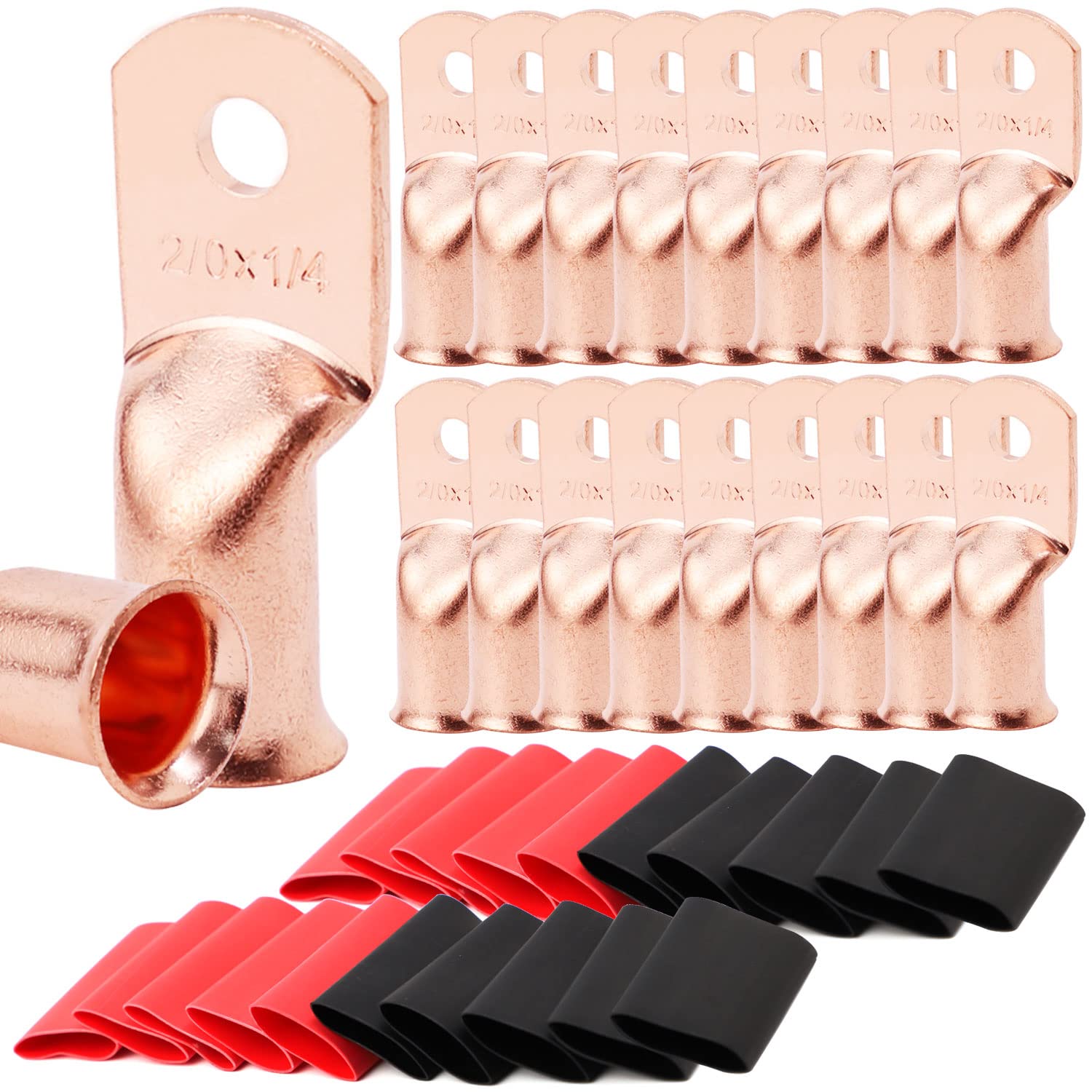 【What You Get:】 20 Pcs per pack of 2/0 Guage (AWG) 1/4" ring terminals, copper lugs closed end termination ring terminals with 20 Pcs 3:1 Dual Wall Adhesive Heat Shrink Tubing Tube for your work(10pcs Black and 10pcs Red).