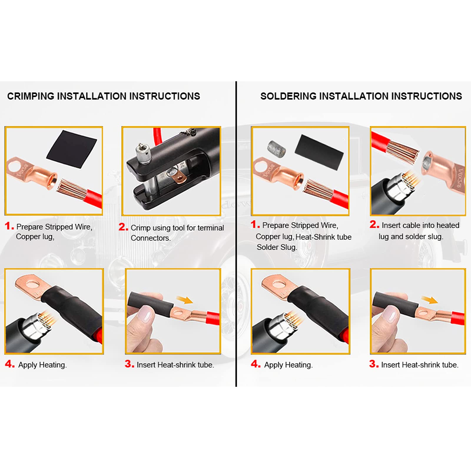 【Reliable and Easy to Use:】These battery lugs with heavy duty construction,improves high temperature durability and have a close end pad design, keeping electrical components, batteries and cables safe and free from moisture, and also prevents solder from leaking during installation; high standard flared opening for easy wire insertion.The wire shrink wraps are all pre-cut into the most common sizes which improve your work efficiency.