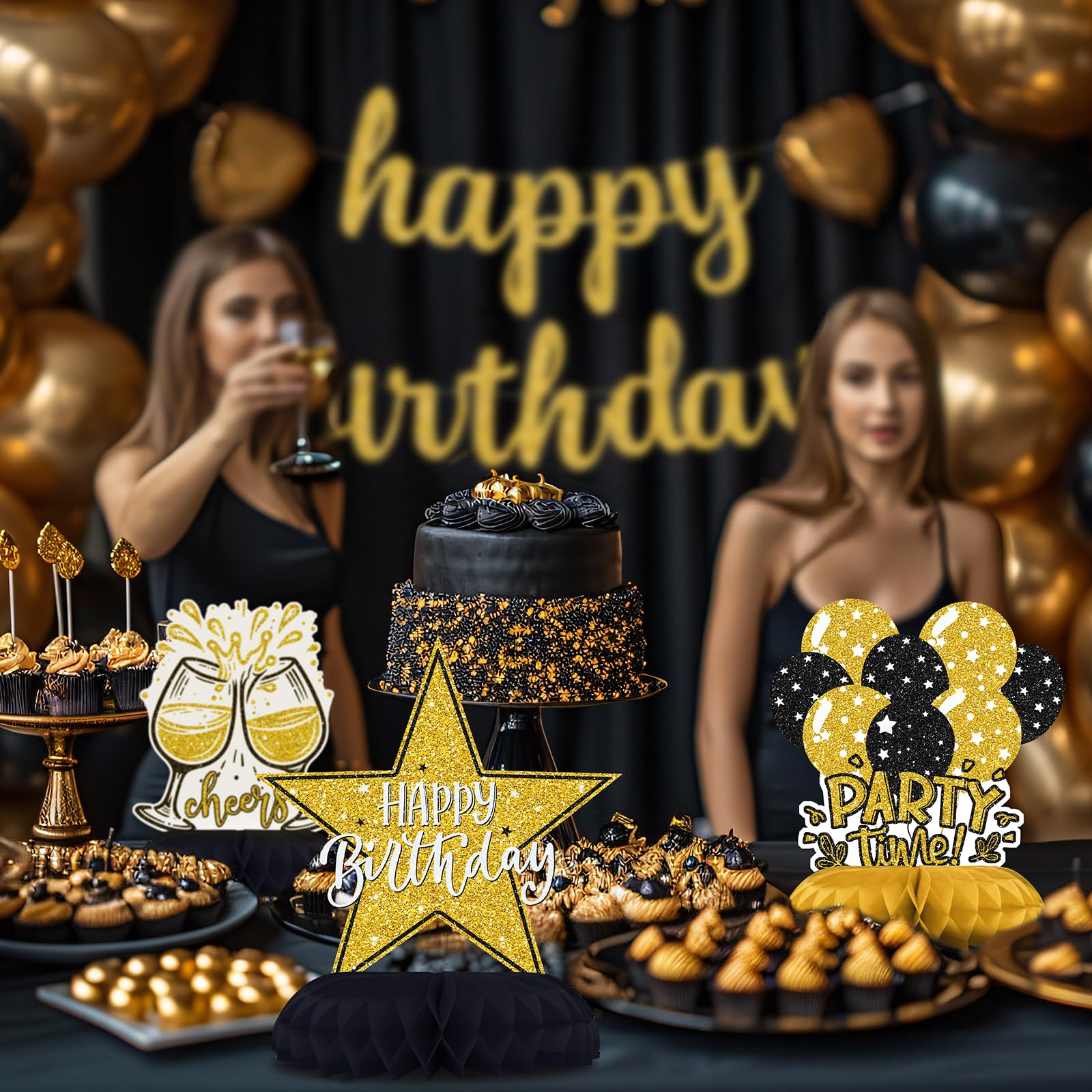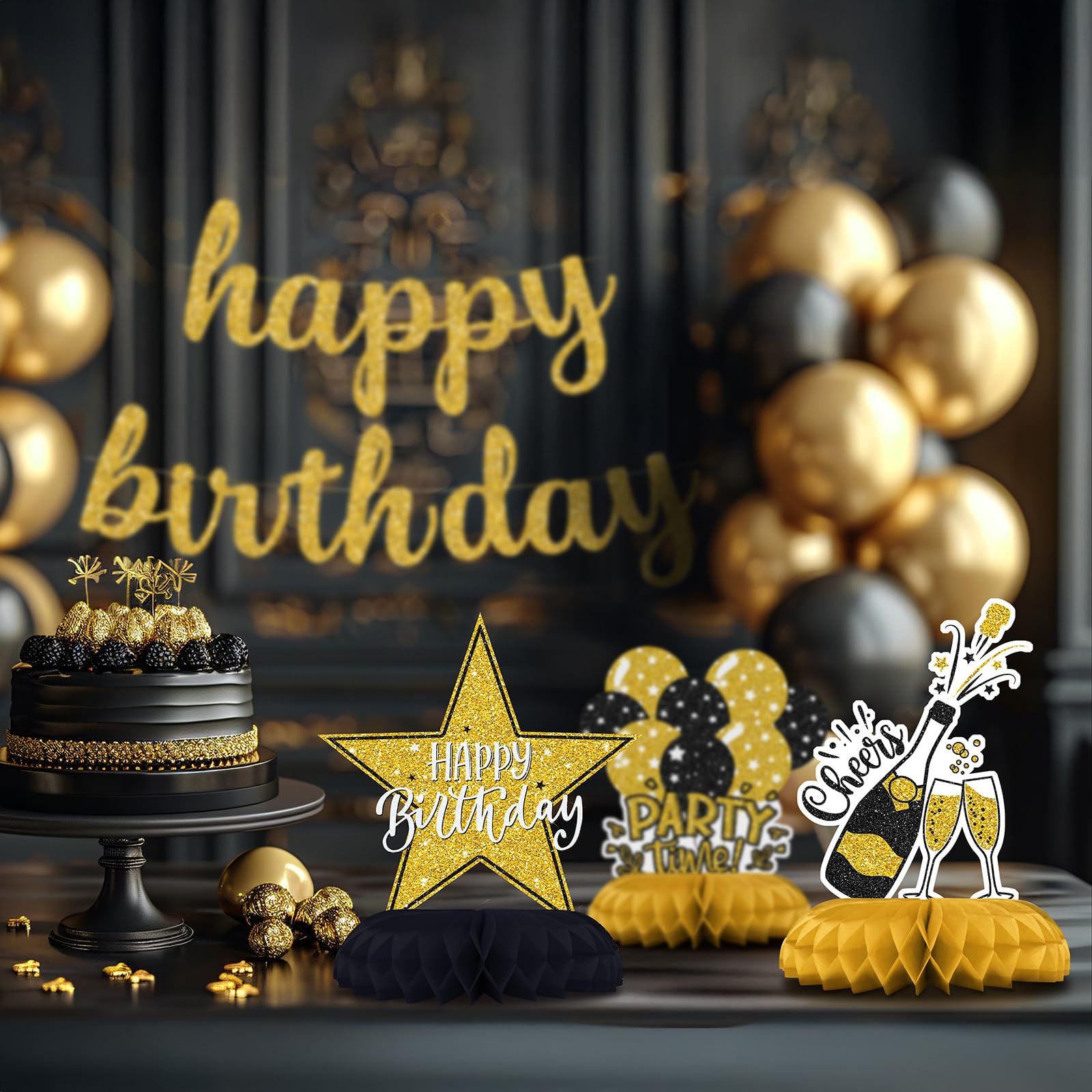 Chic & Unique Design: These centerpieces showcase a stylish black and gold color scheme, adorned with fun party elements like stars, balloons, cakes, and presents. The overall design aligns perfectly with the birthday party theme, making them ideal black and gold birthday decorations to add a festive touch.