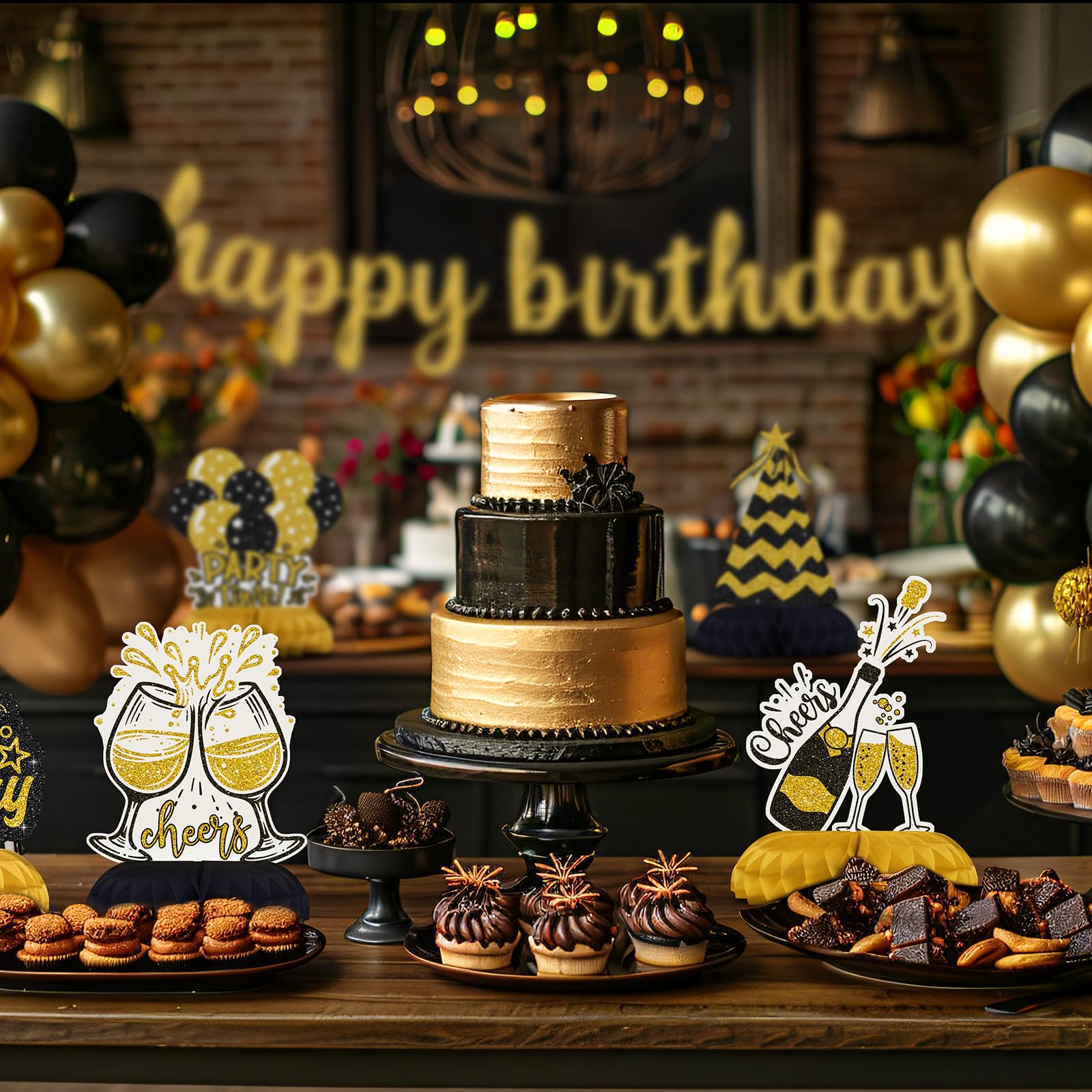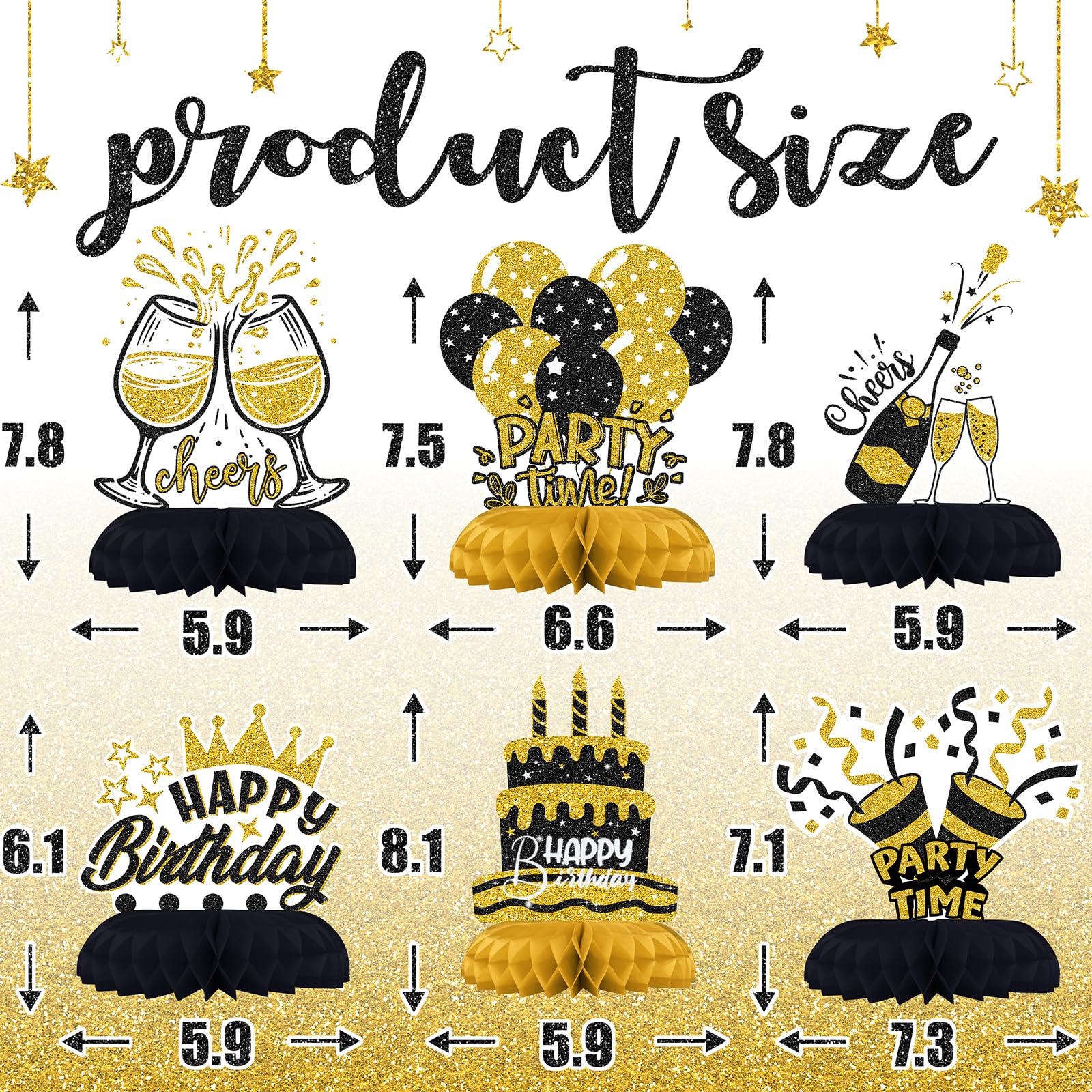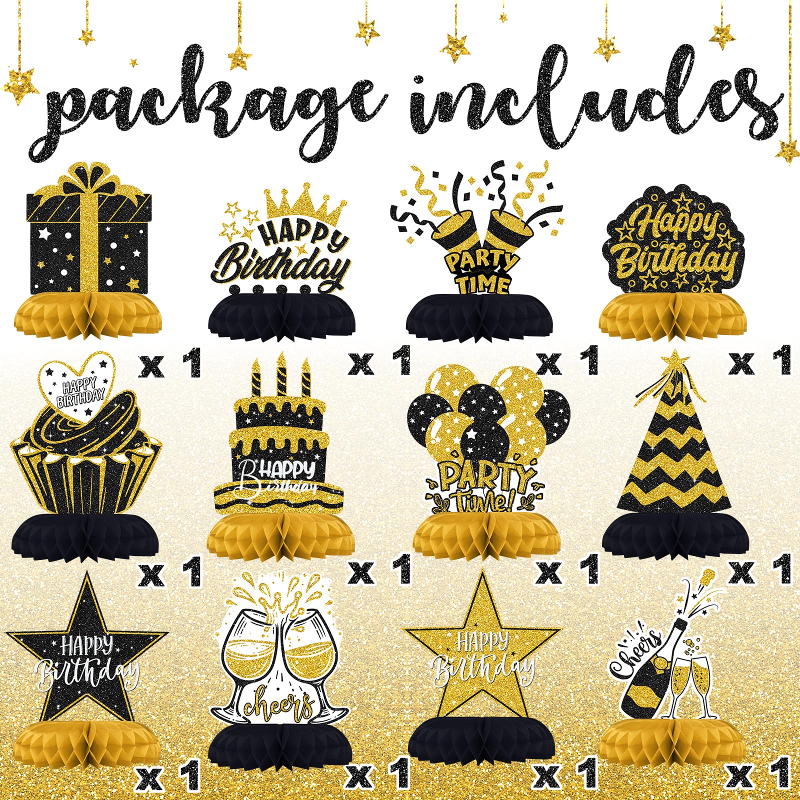 What You’ll Receive: This set includes 12 beautifully designed black and gold honeycomb decorations, featuring birthday-themed cards and paper honeycomb balls. These black and gold party decorations are perfect for enhancing the atmosphere of any milestone birthday celebration.