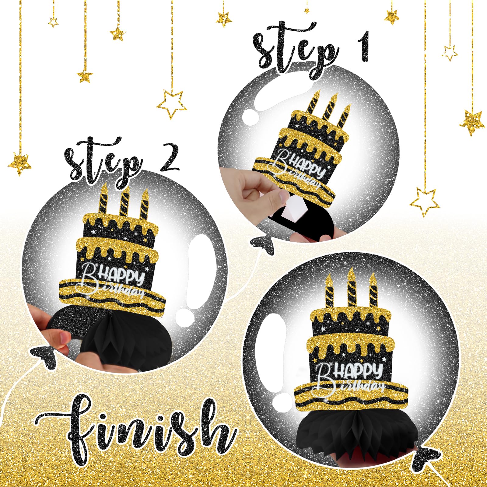 Effortless Setup: Assembly is quick and simple. Just peel off the sticker on the honeycomb ball and attach it to the designated spot on the card. Spend less time setting up and more time enjoying your black and gold birthday party decorations.
