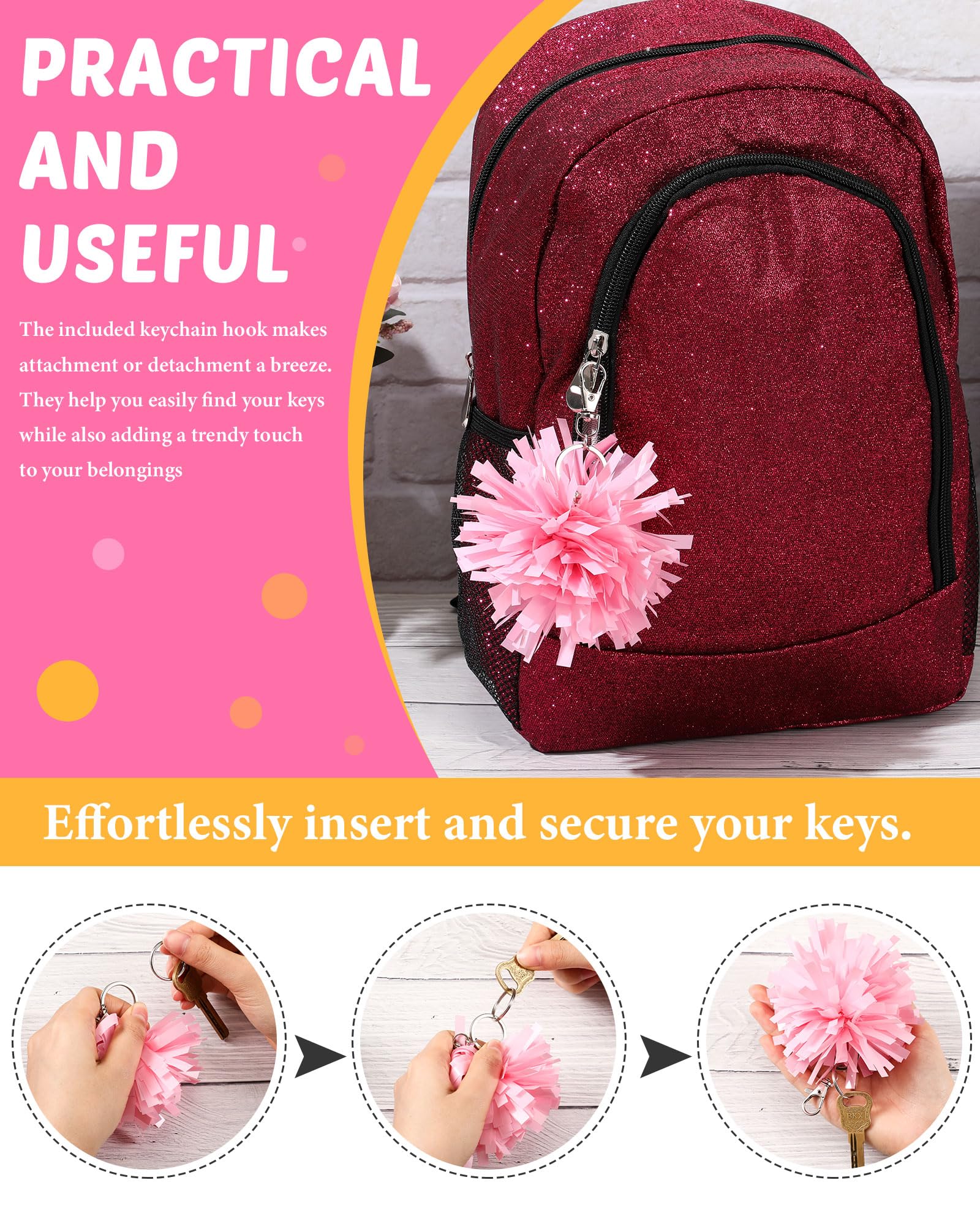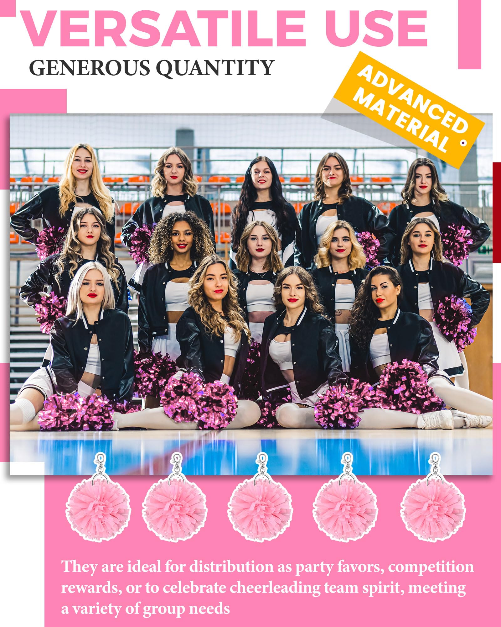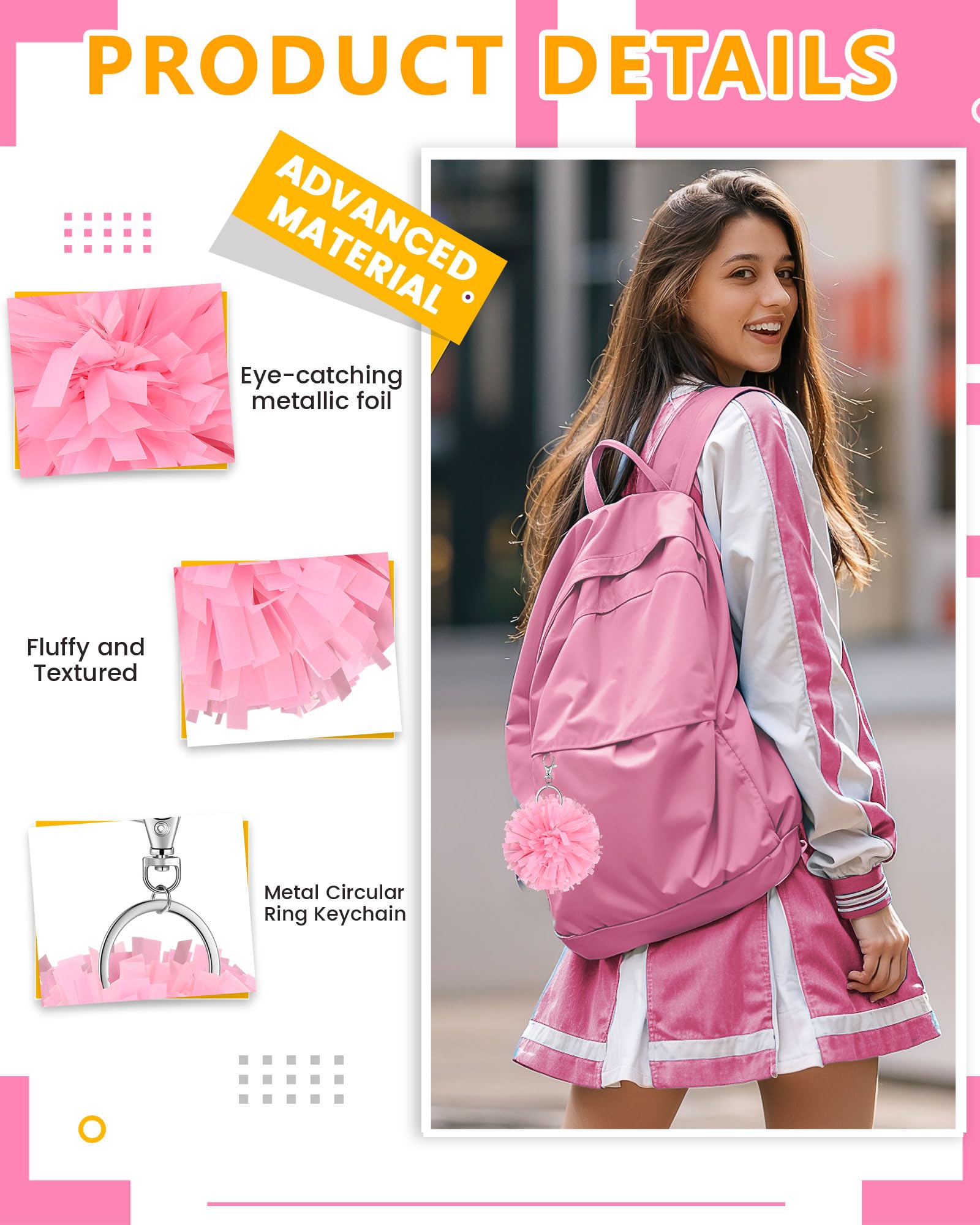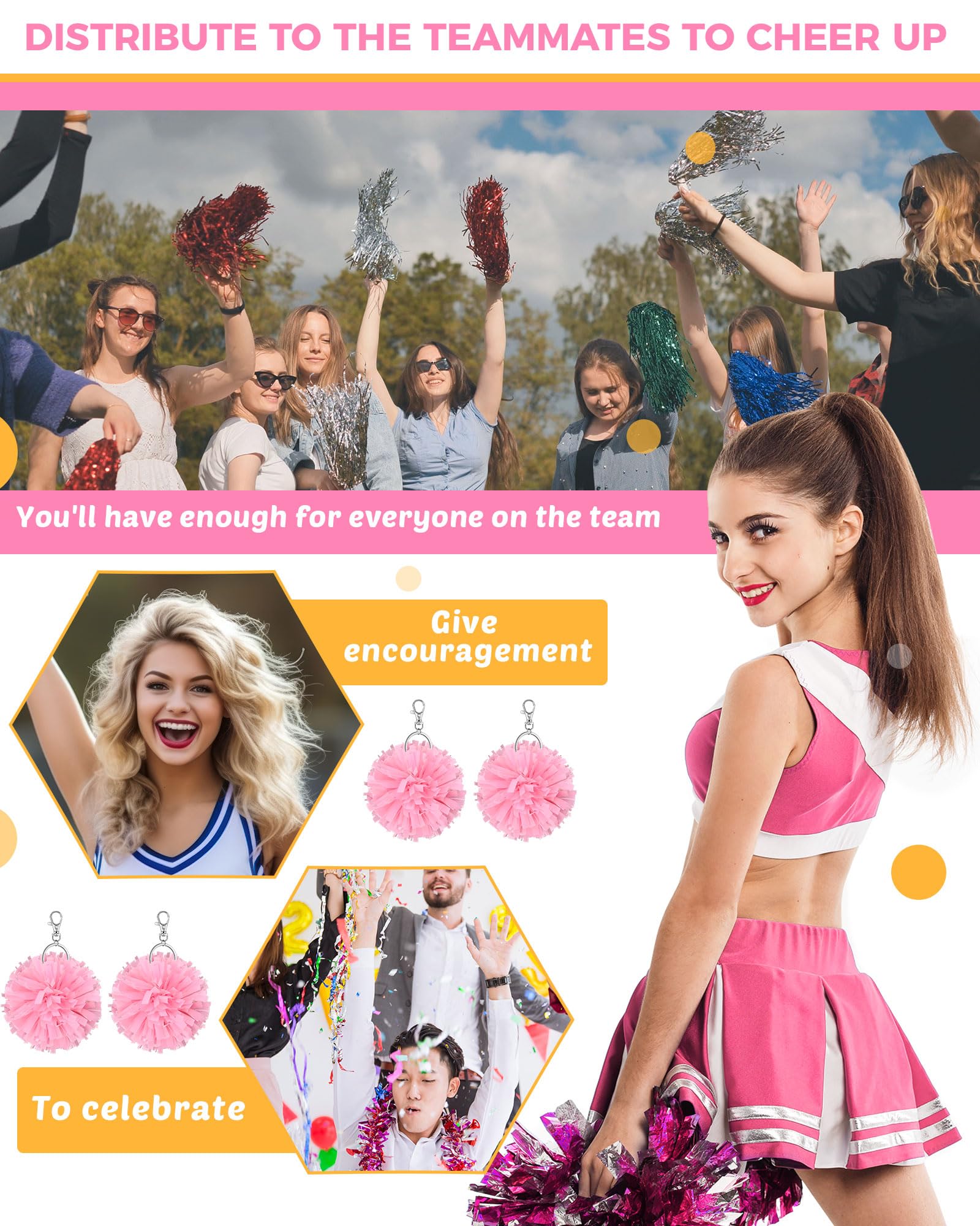 Sturdy Material and Vibrant Colors: these pom pom keychains are made of quality plastic and metal for durability, and feature nonfading, shimmering matte pink foil; They catch the eye, boost cheerleading spirit, and show your strong support for the team
