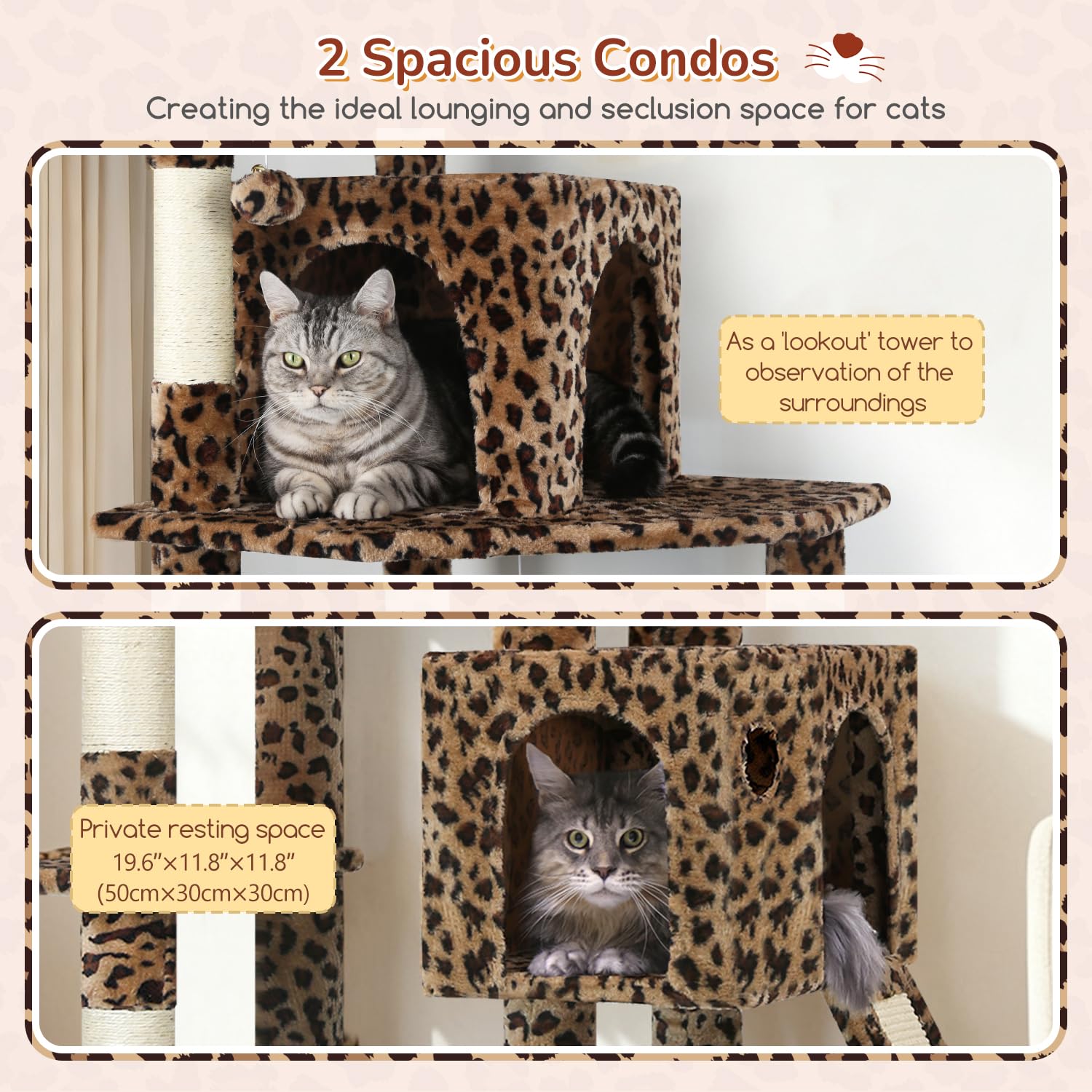 SPACIOUS AND COMFORTABLE CAT CONDO - This cat tower provides a spacious cat condo that allows cats to rest, hide, or play comfortably inside. The cat cave is a safe, private space that meets cats' needs