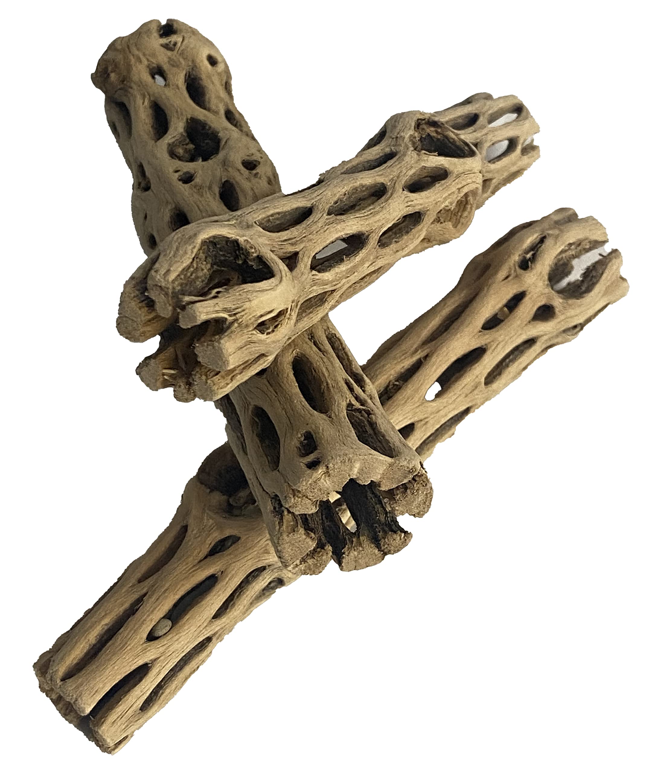 Cholla’s natural skeleton-like structure Works both in Terrarium and Aquatic enviroments. Hermit Crabs, Reptiles,Tarantulas and all kinds of critters love Climbing on, making structures for nests, hiding in holes etc. Small Insects and aquatic critters or Babies hide in the holes also. All kinds of critters love and use cholla.