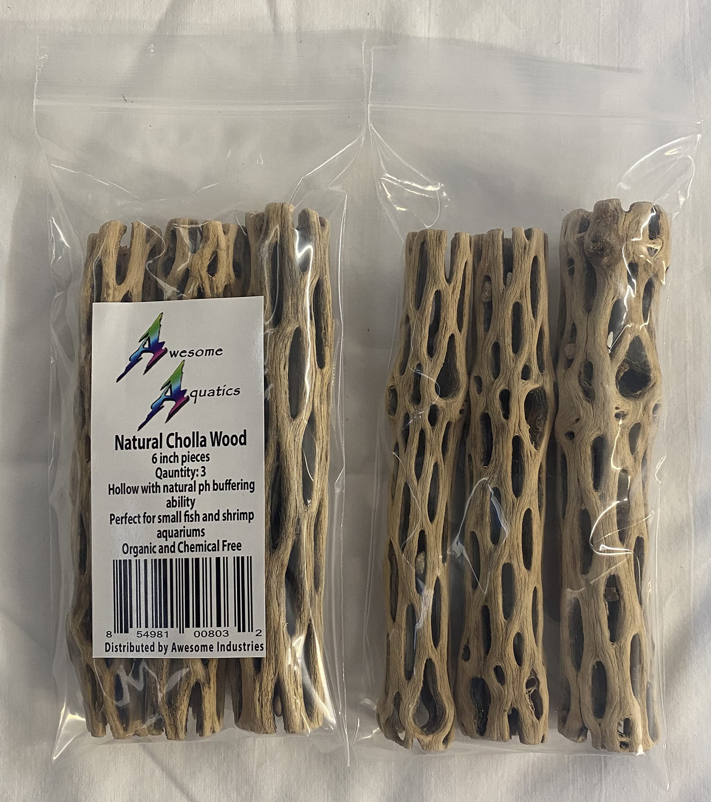 Awesome Aquatic 3 - 6 inch pieces Organic Naturally Dried and Aged Cholla wood Untreated, Chemical, Fertilizer and Pesticide free. Completely safe for all your animal friends, Shrimp, Attaching Plants / Moss, Hermits, Geckos, and all kinds of critters.