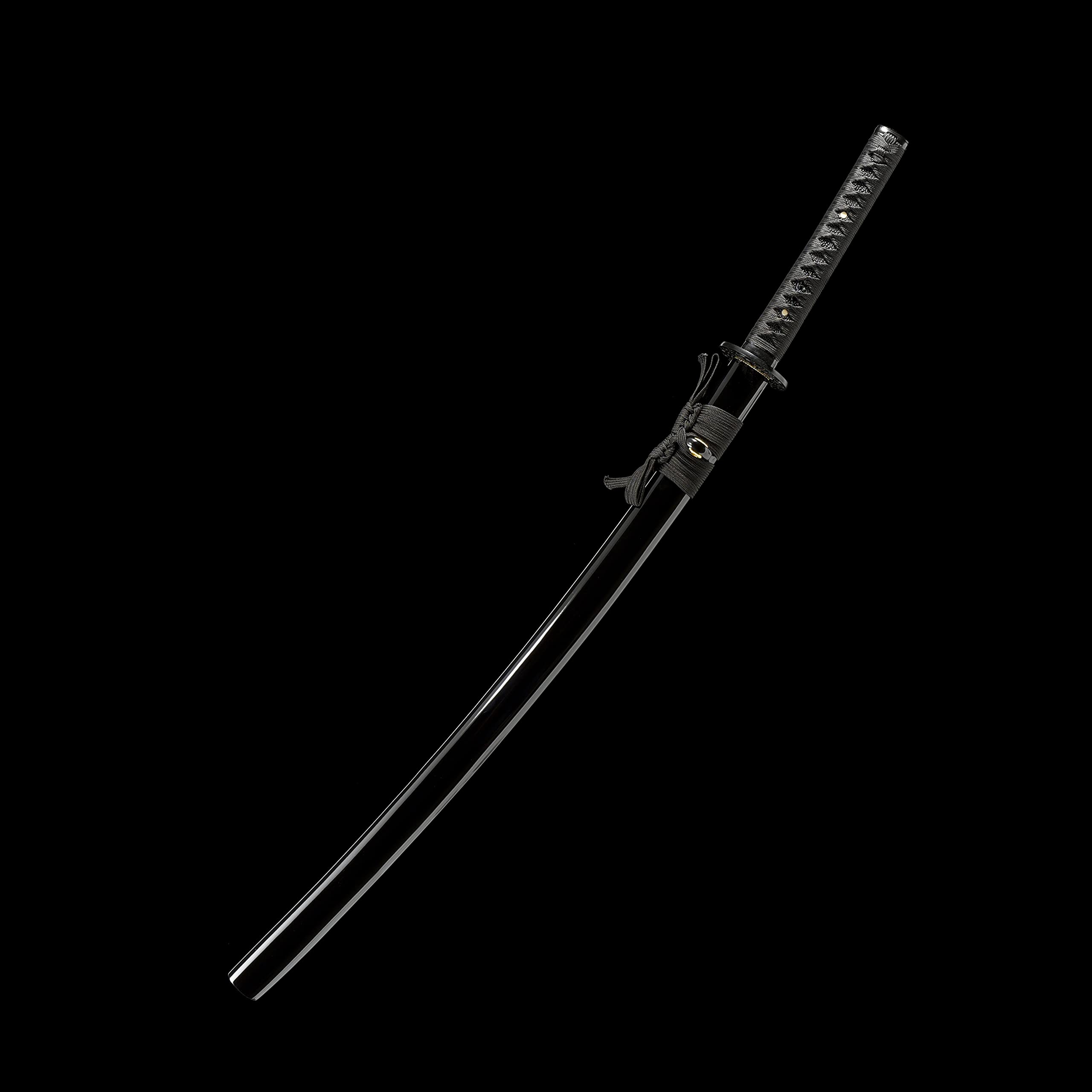To avoid fading and discolouration, Tsuba is made of alloy material.The Handleis made of Dirt-resistant black thin Ito that absorbs sweat. Other materials include black imitated rayskin, High Quality Wooden Sheath and Black-painted Saya.