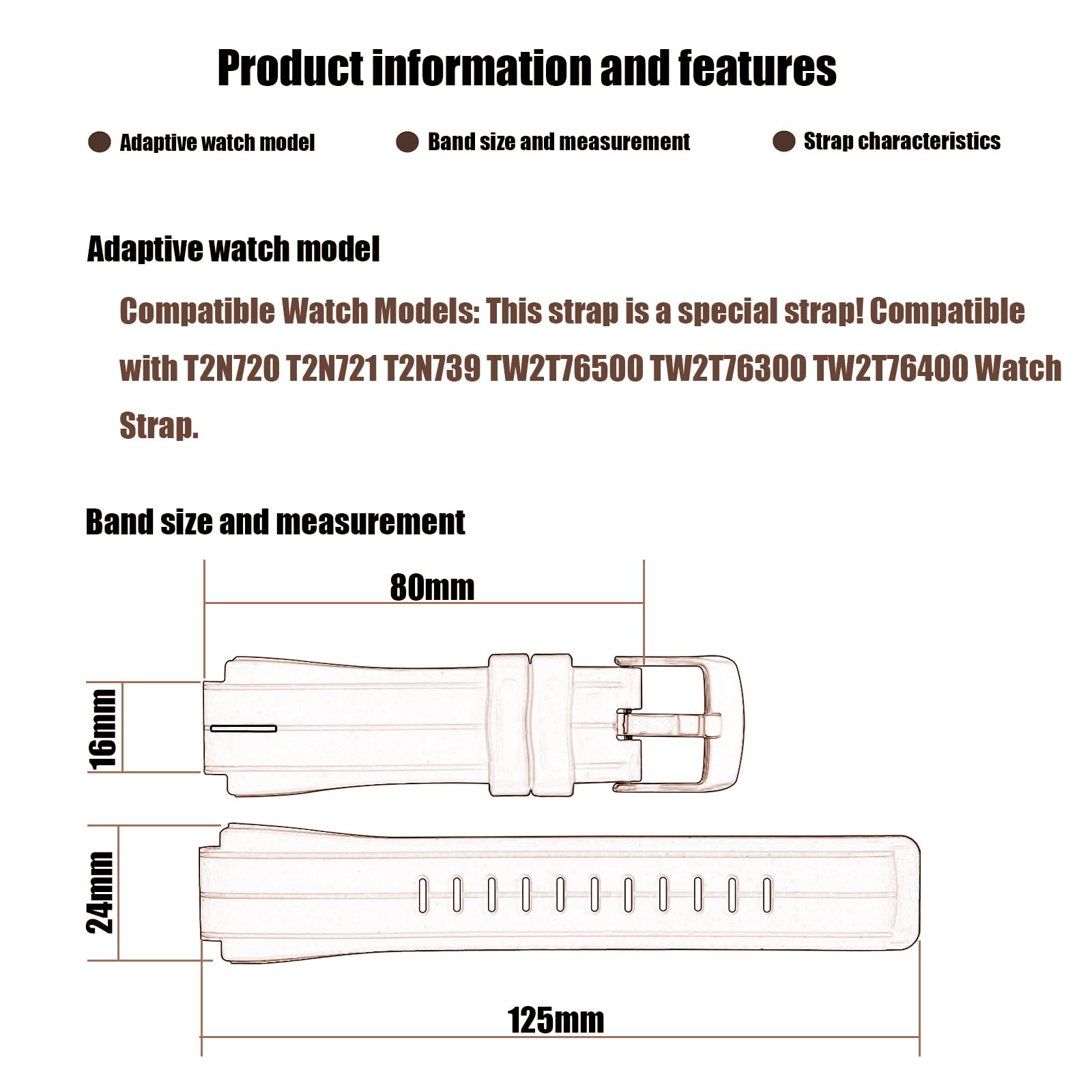 Package:1* Compatible Timex T2N720 Watch Band+ 2* Screws