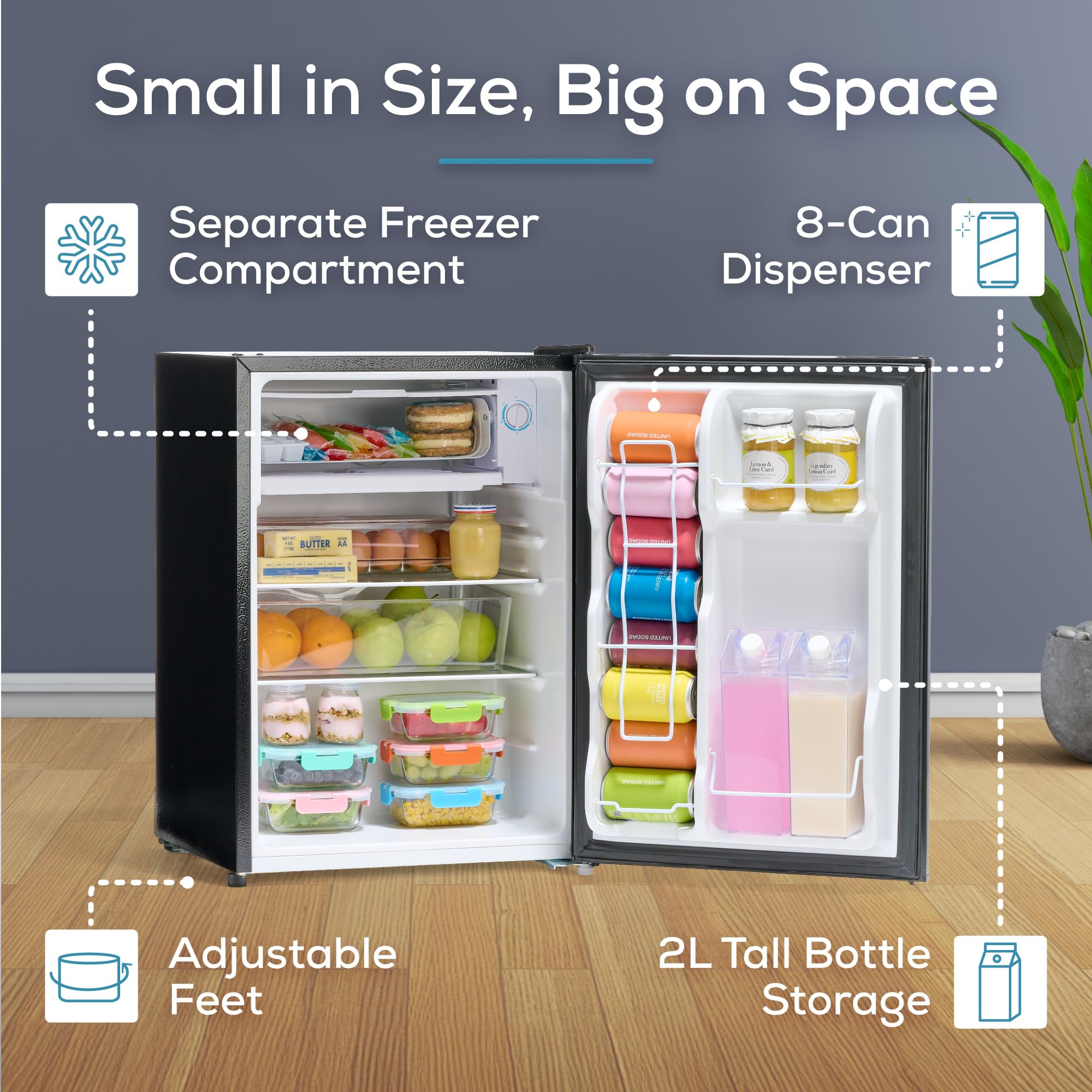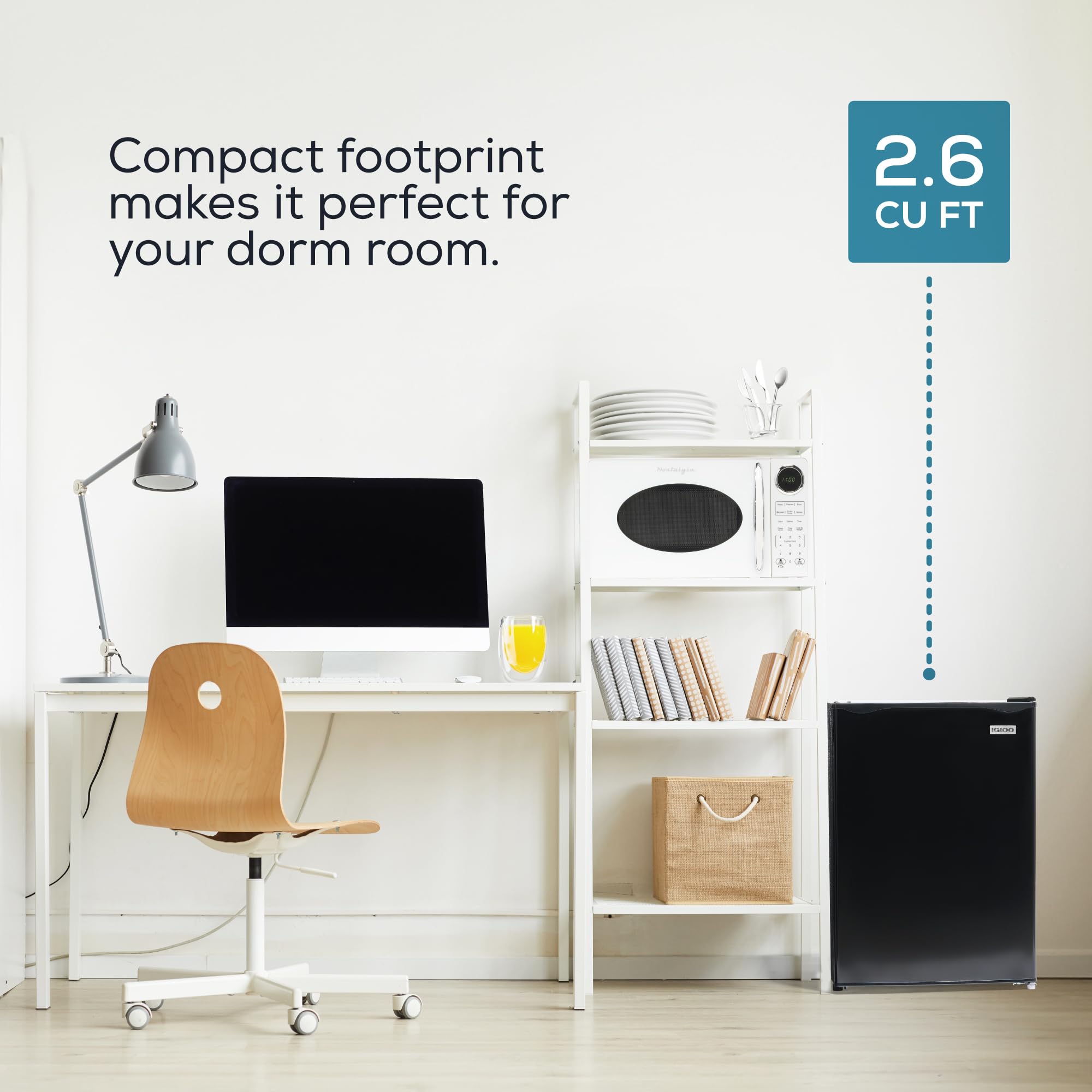 CAPACITY: Spacious 2.6 cu. ft. single door refrigerator is perfect for snacks, fruits and vegetables, soda, beer, ice cream and more.