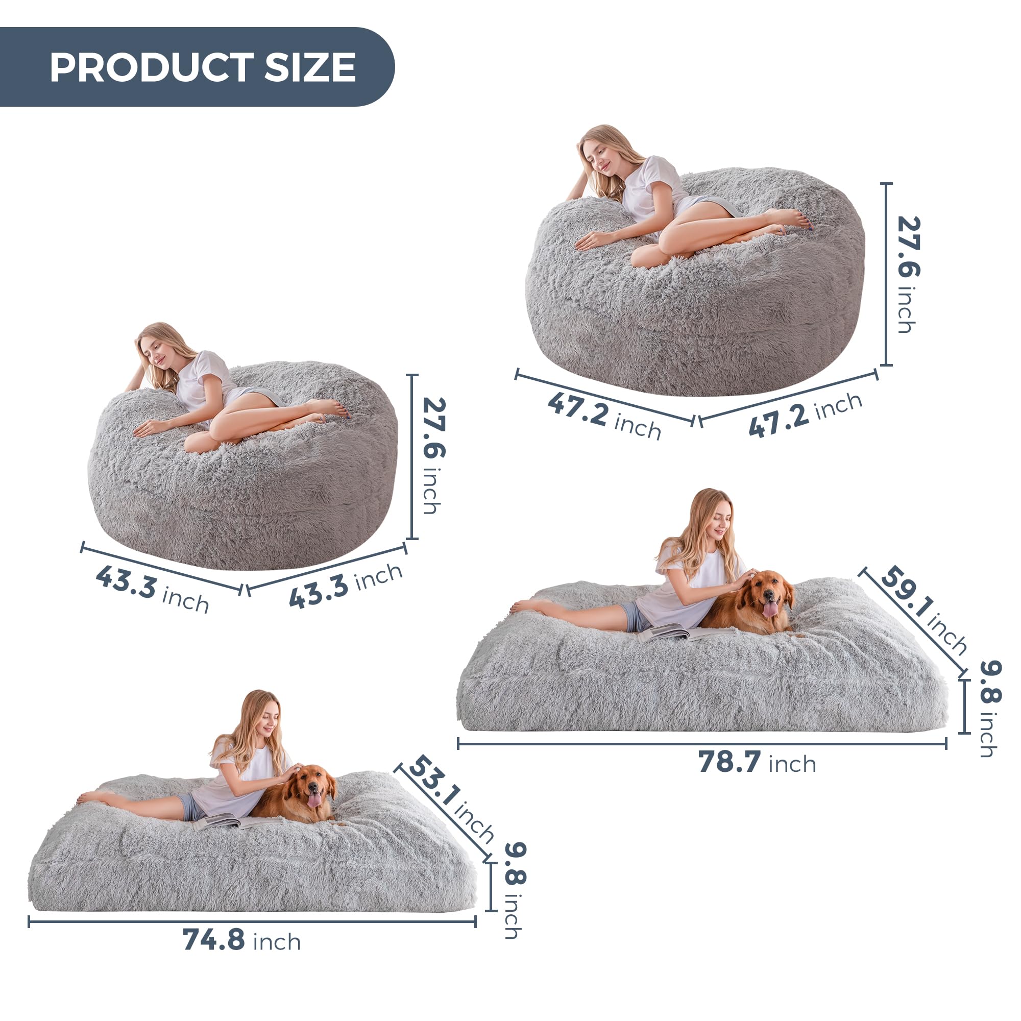 Comfort and Support Filling: Filled with hexagonal high-density support foam, this bean bed offers optimal comfort and support. It takes approximately 2-3 hours for the huge bean bag chair to fluff up, and once it does, it plumps up evenly without any clumps. The fillers used are new eco-friendly high-density support foam, which is odorless and has high resilience, providing excellent support and durability.
