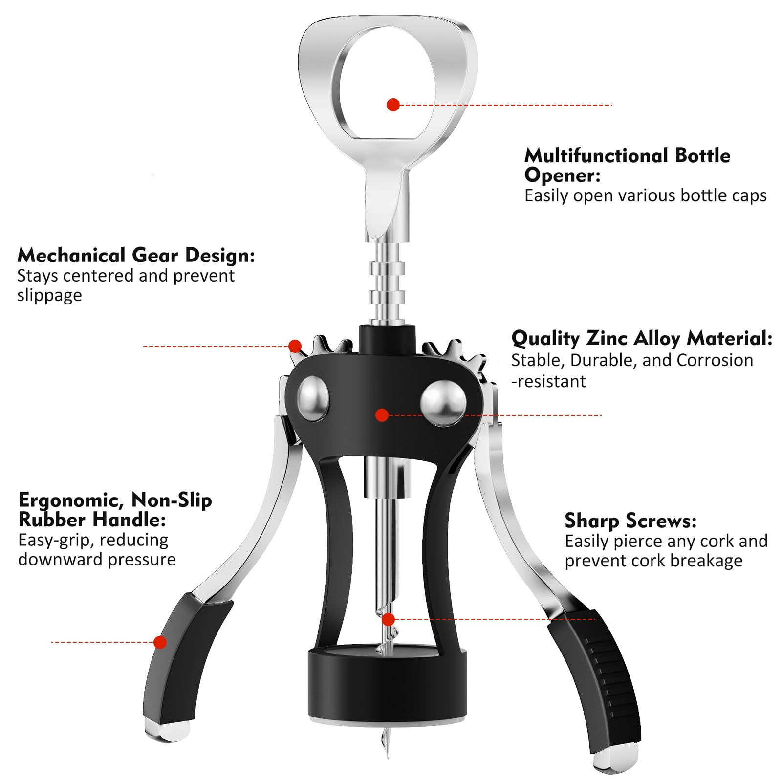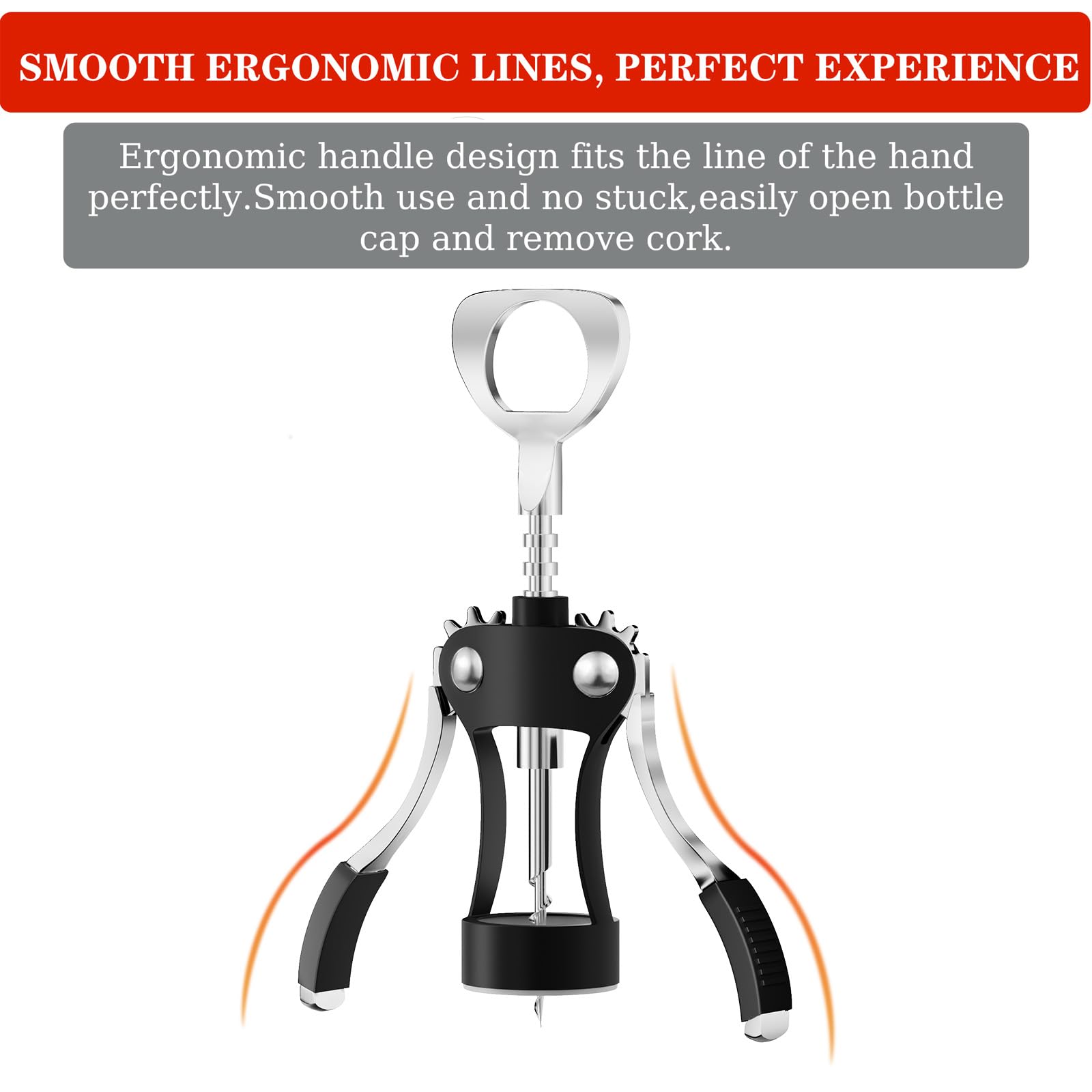 [Design Upgrade]: Ergonomic, non-slip rubber handle cover helps reduce downward pressure on pulling out the cork. The wing opener lever principle applied structure saves you the power to open the wine easily