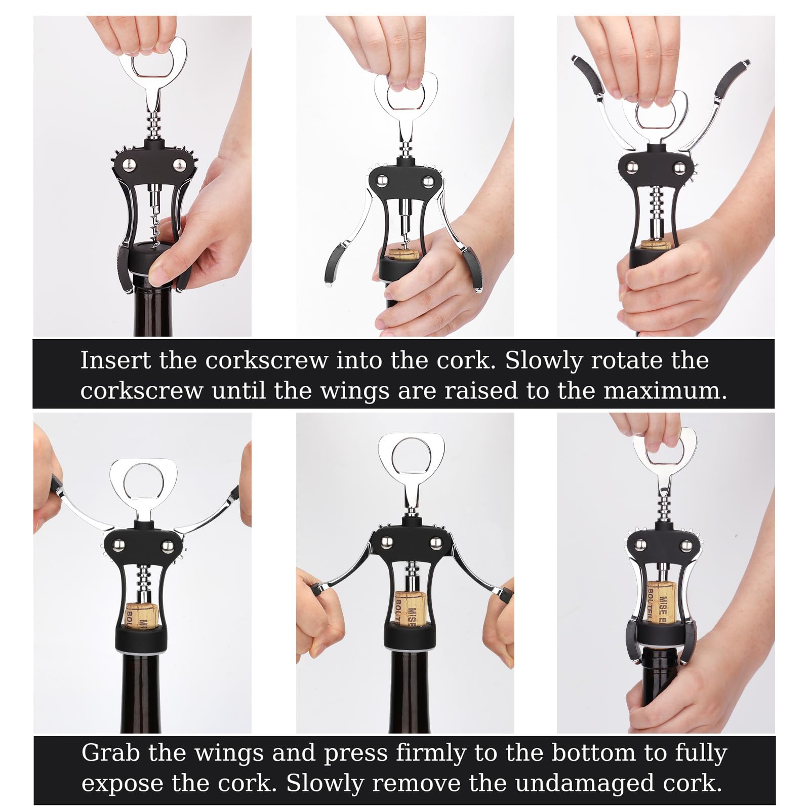 [Modern and Beautiful]: Our wine corkscrew openers are simple and elegant in design, with classic and timeless color schemes. It feels sturdy in the hand and looks elegant on a table. It is the best wing opener for formal and casual occasions at home, bars, conferences, parties or weddings