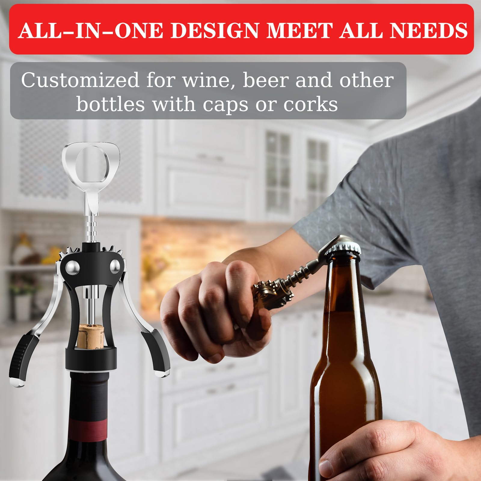 [MULTI-FUNCTIONAL CONSTRUCTION]: The wine bottle opener's well-designed end effectively opens all beer bottle caps, making it easy to hang on it, allowing you to take it safely. A sharp helix that easily pierces any cork, including wine, olive oil, vinegar