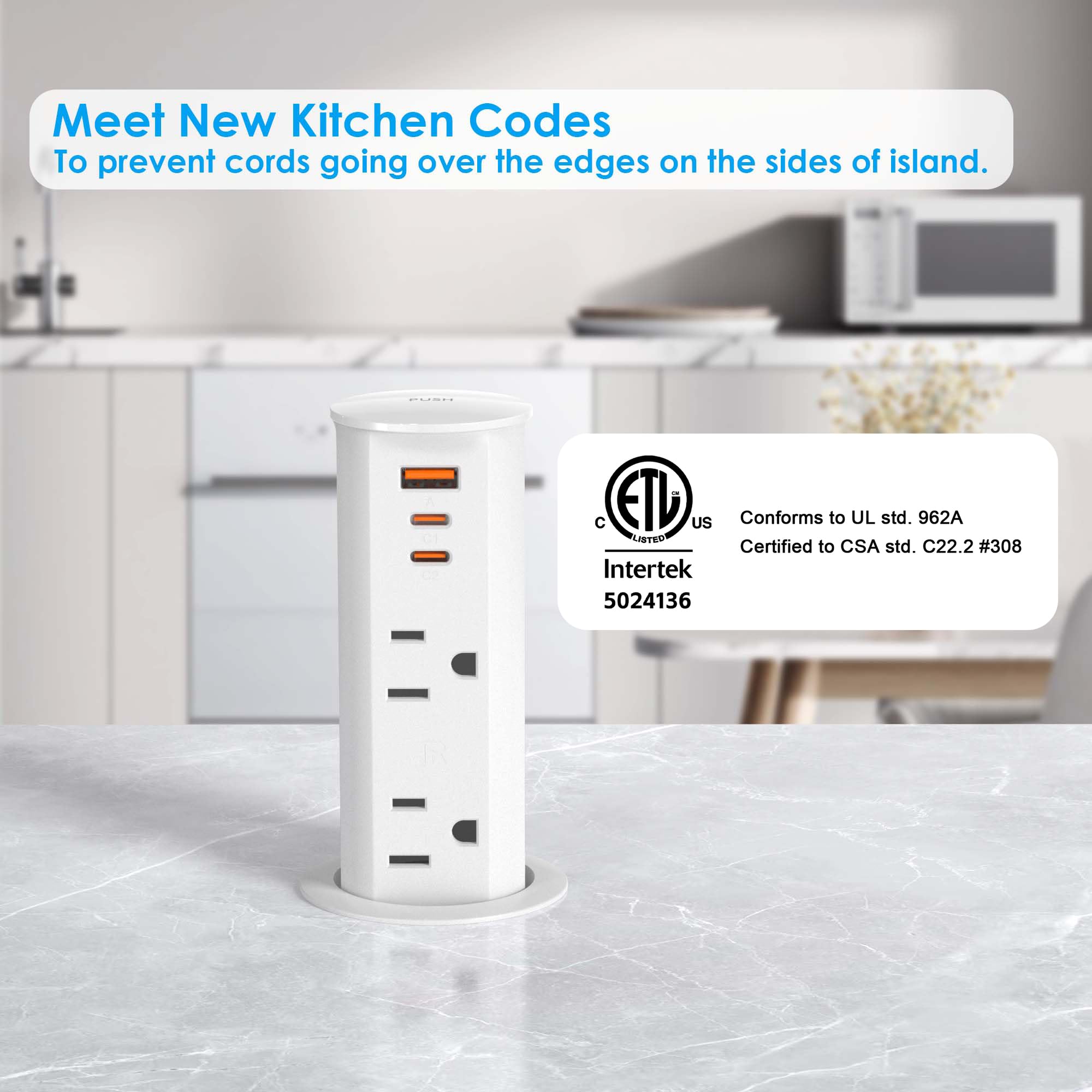 The pop up outlet is tamper resistant(TR) to meet code and keep children safe from electric shock. Work and cook safe with the splash and dust proof features, easily wipe off water on the socket without damage itself. Perfect addition on your countertop to help you stay organized.