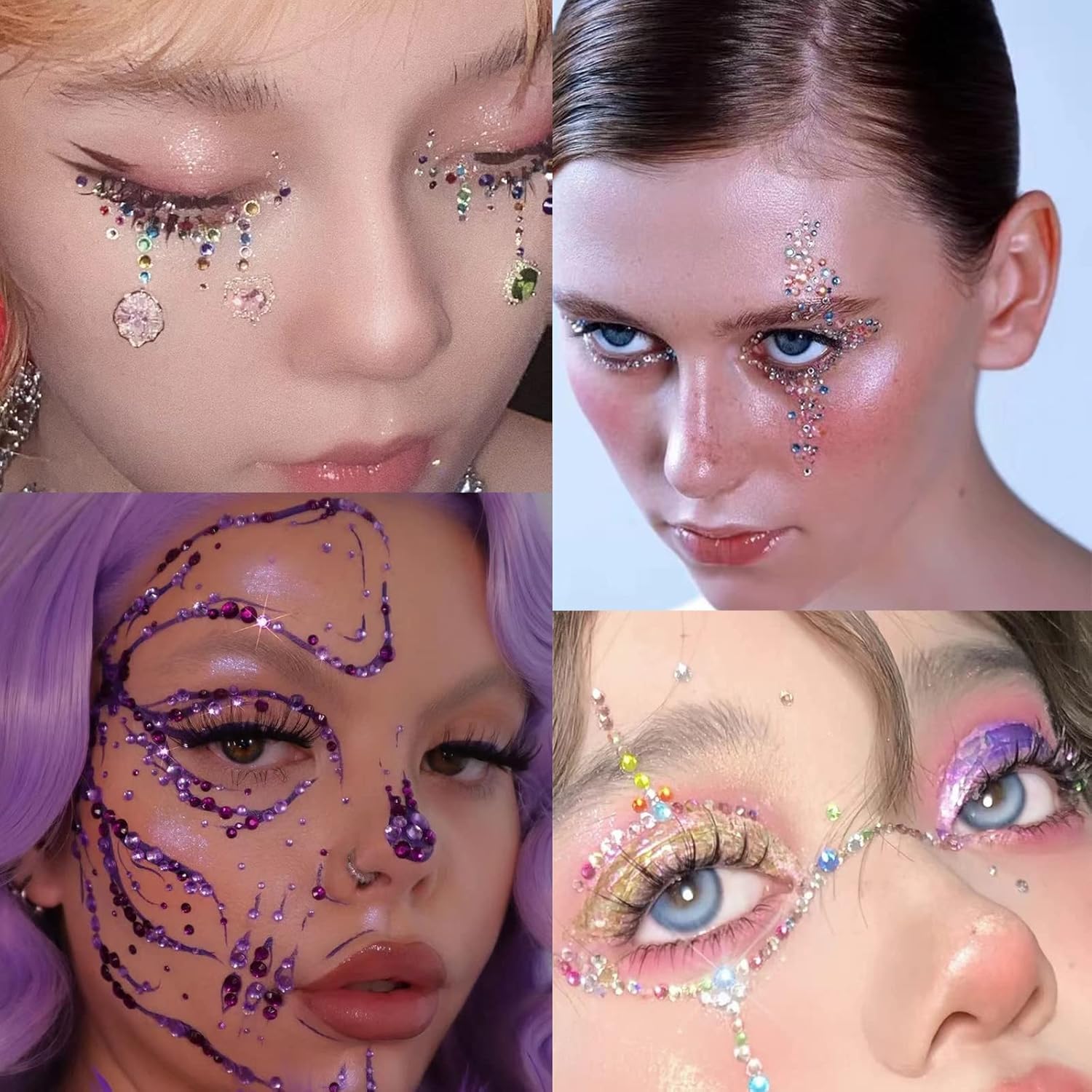 💎【Durable and Reusable】: Each face jewels for makeup is backed with glue. The face rhinestones for makeup can be used over and over again. When the glue dries, it can be used again with eyelash glue.