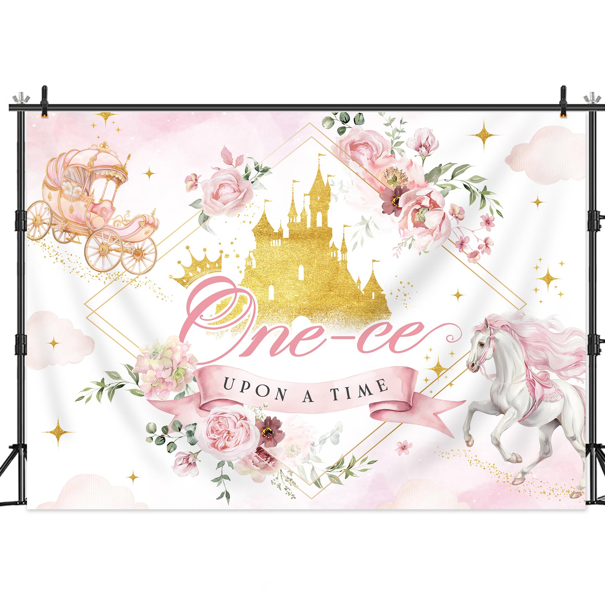 ▶UNIQUE DESIGN: Onederful Cowgirl Pink Floral Castle Western Horse Gold Carriage Watercolor pattern,cute.