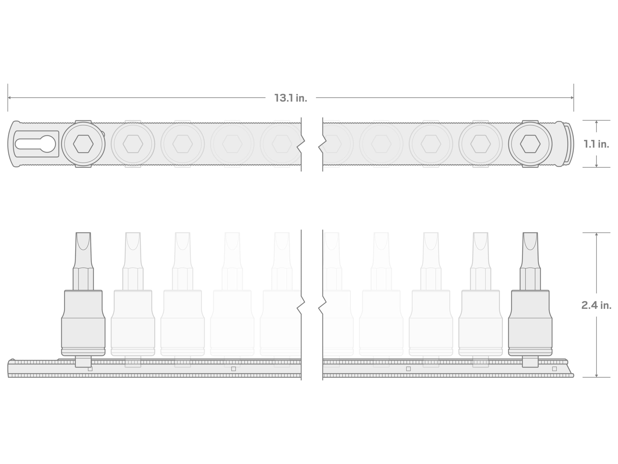 Twist-to-lock socket rail organizes and securely holds sockets in place, both for in your toolbox and on the go