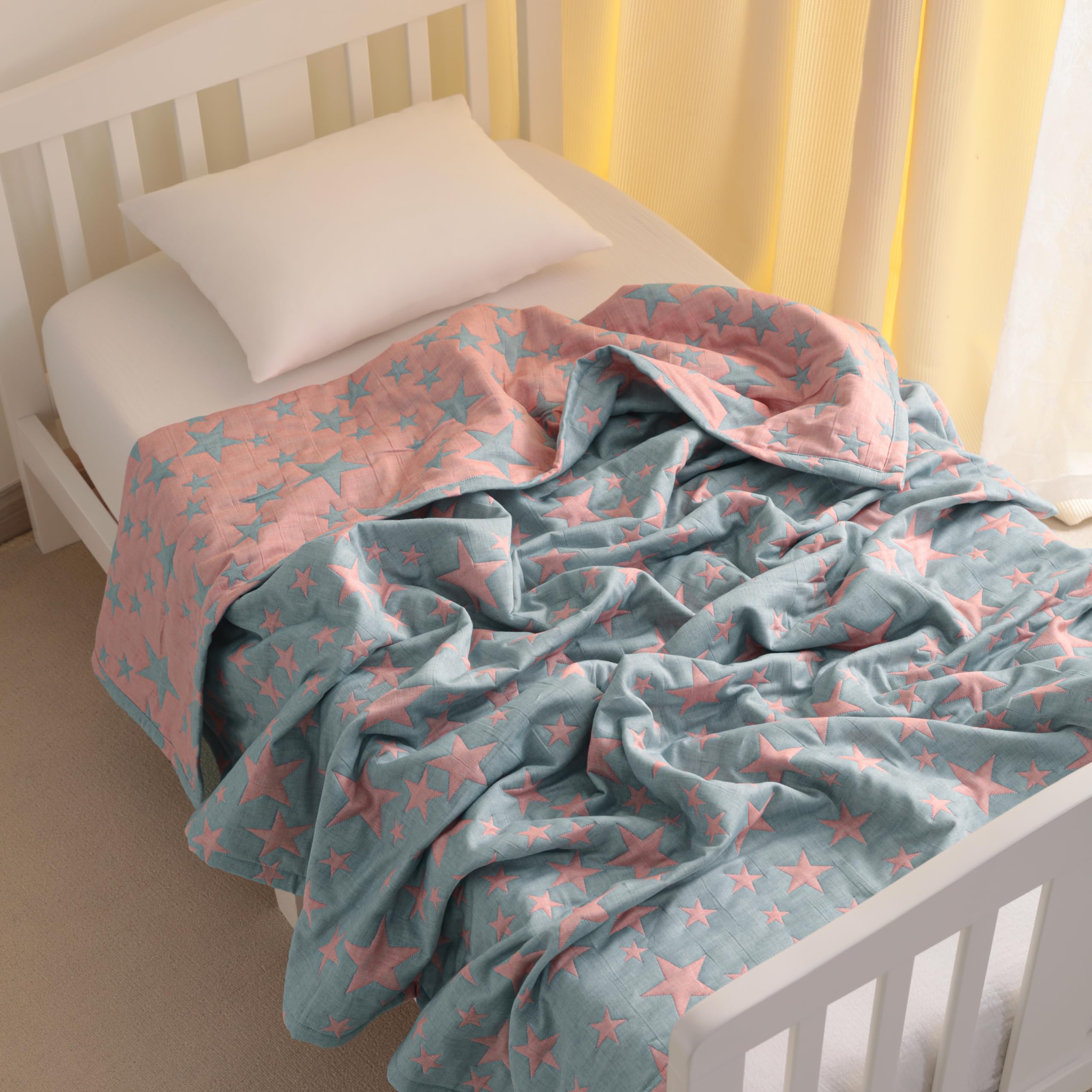 Classic reversible design: This blanket is designed reversibly which is very convenient and durable. The front is the blue background dotted with white stars patterns. The back is the white background dotted with blue stars patterns.