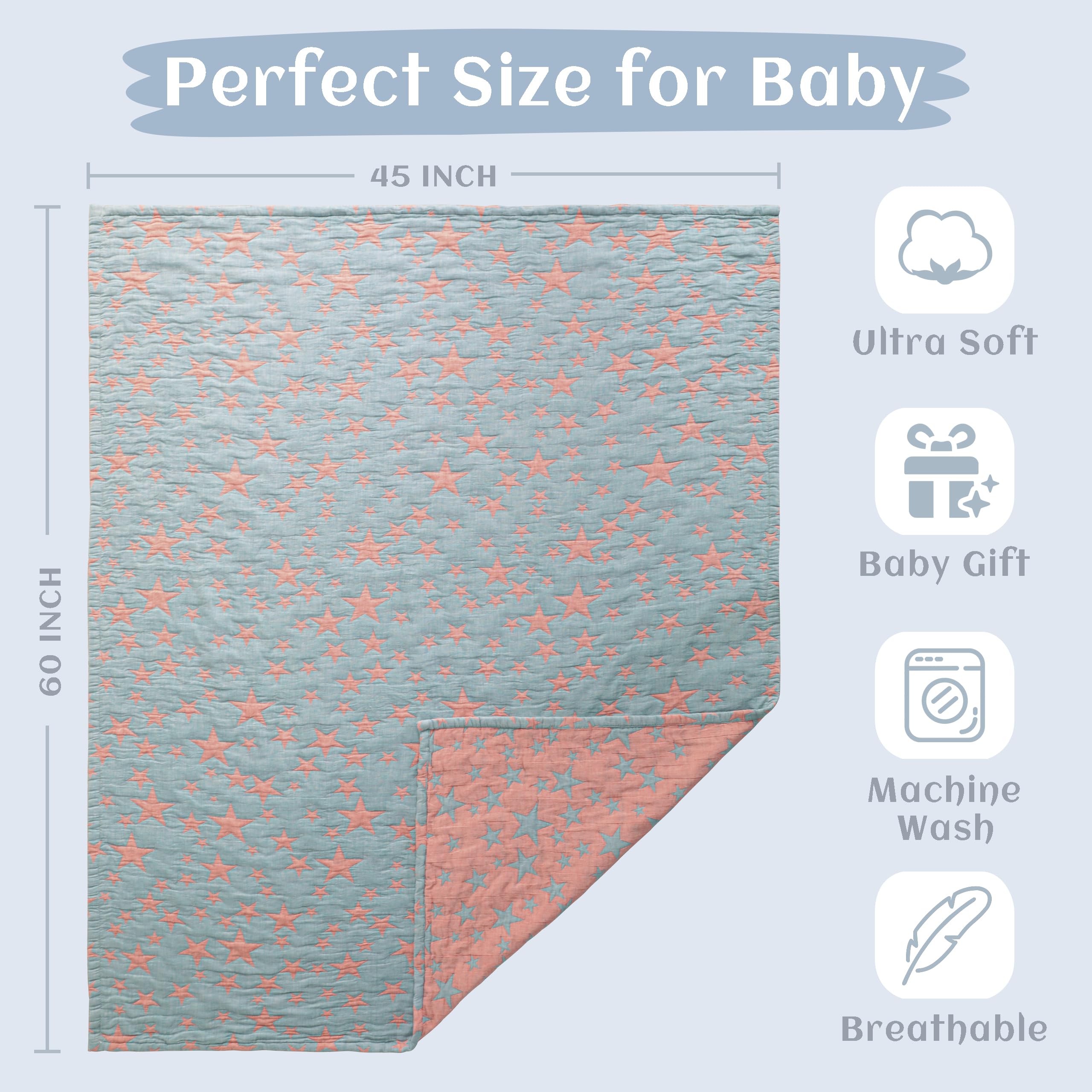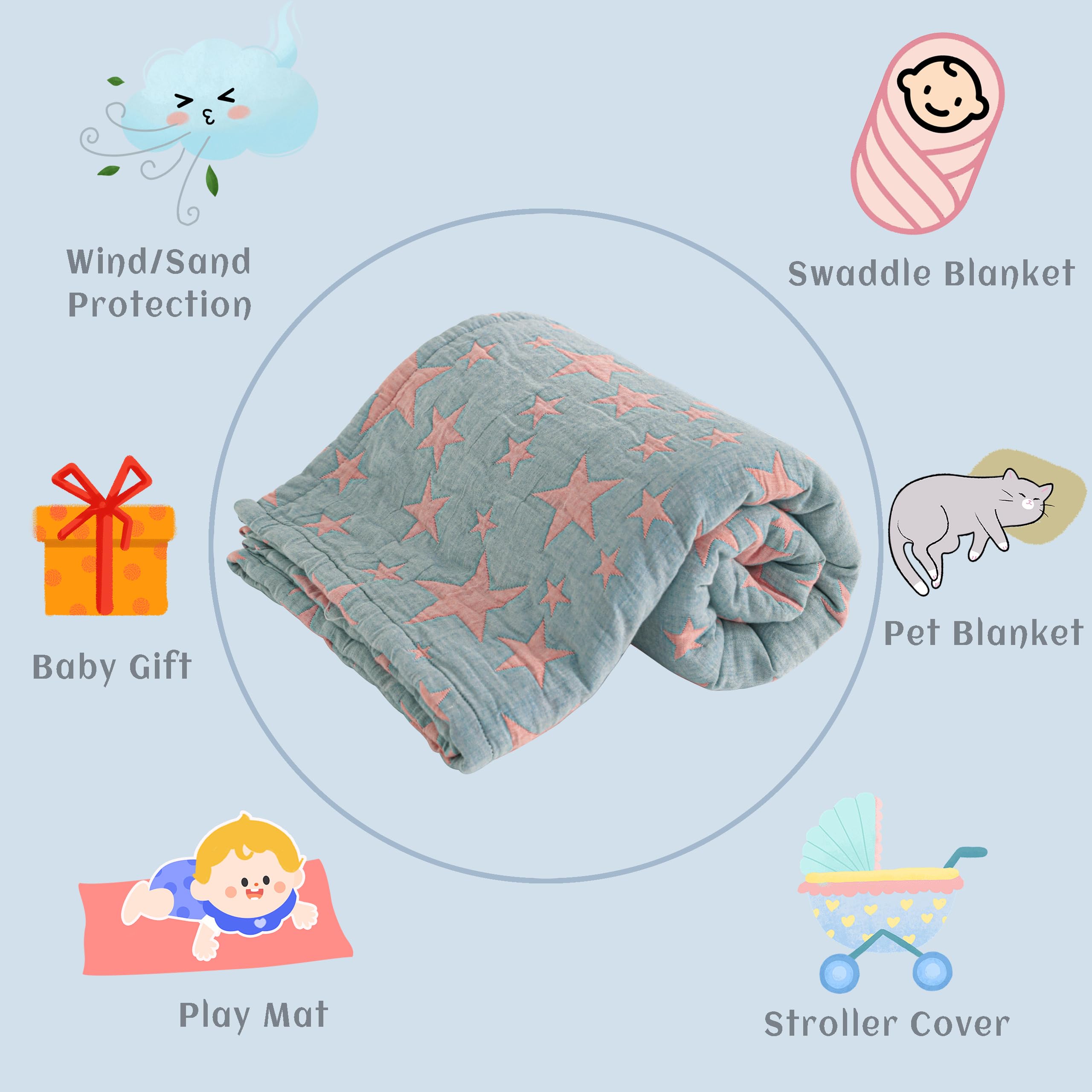 Multiple use: These muslin blankets can be used for tummy time, traveling, cuddling, stroller and car seat use, picnics, and even as a throw blanket.