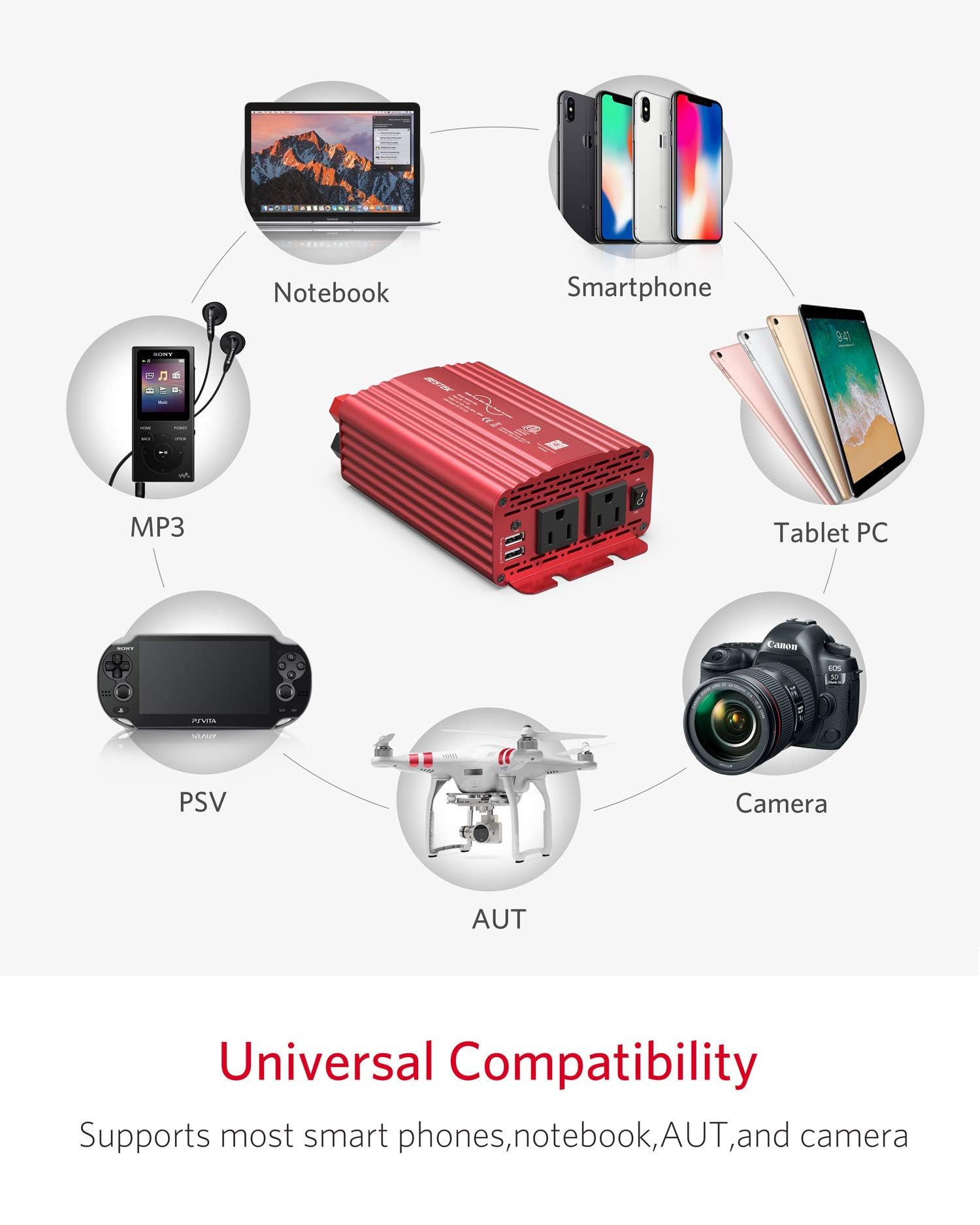Travel and Emergency Equipment: This car inverter supports all 12V cars, making it easy to use when you travel on the go, camping or other emergency. The power sockets can supply power to any appliances requiring within 300W power such as medical devices: CPAP Machine, Nebulizer, Ventilator, Breast Pump and other small appliances/devices: Laptops, DVD players, Air compressor, Projectors, TV, Speaker, Air conditioner, Microwave, Mini-refrigerator, Air pumps, Car vacuum cleaners, Starlink, kindles, cell phone, game console, cameras, Christmas gift, string lights, etc..