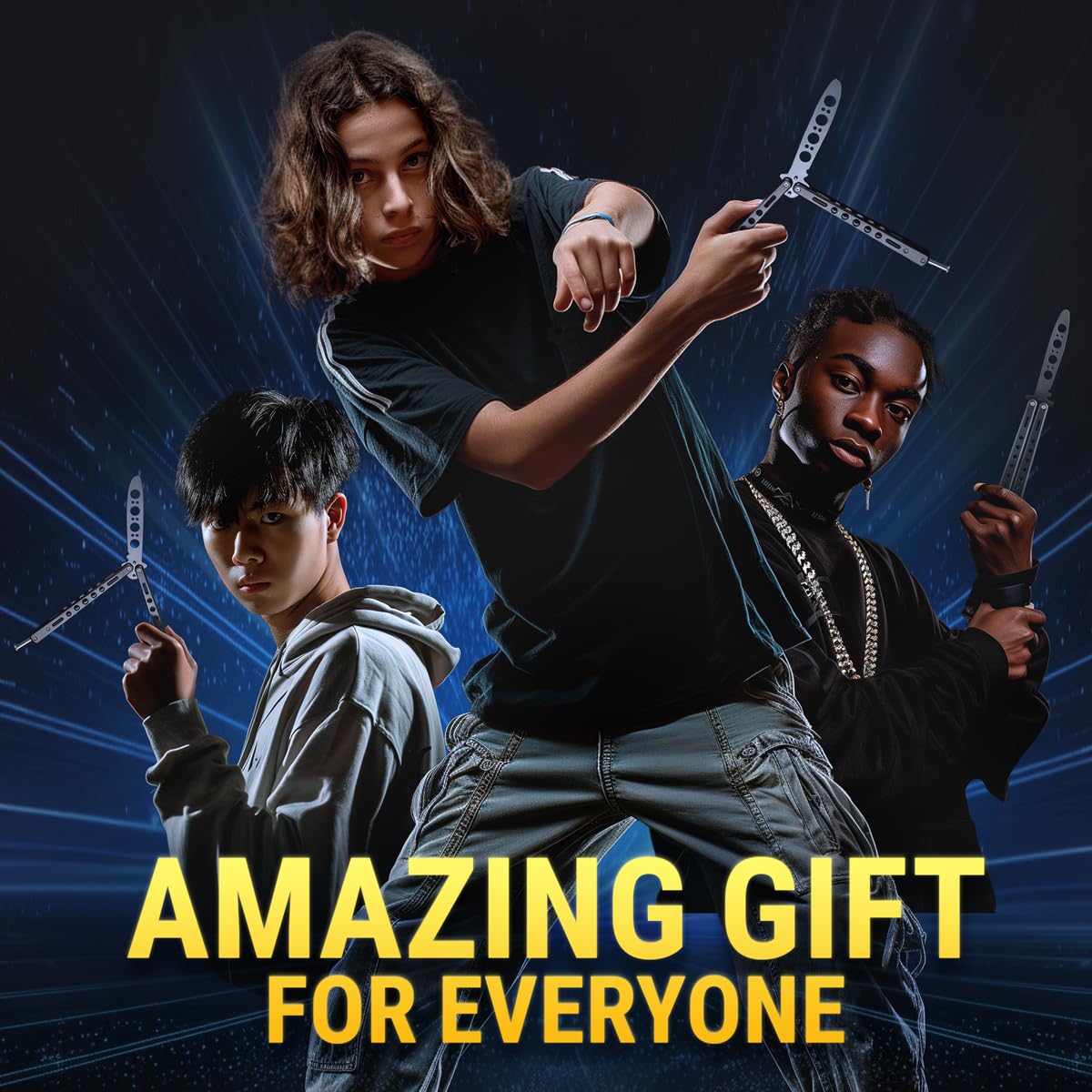 DURABLE BUILD. We use high-quality stainless steel with with reinforced screws, pins and spring latch. Our training butterfly knife is designed for optimal balance, durability, handling and reliable use through practice sessions.