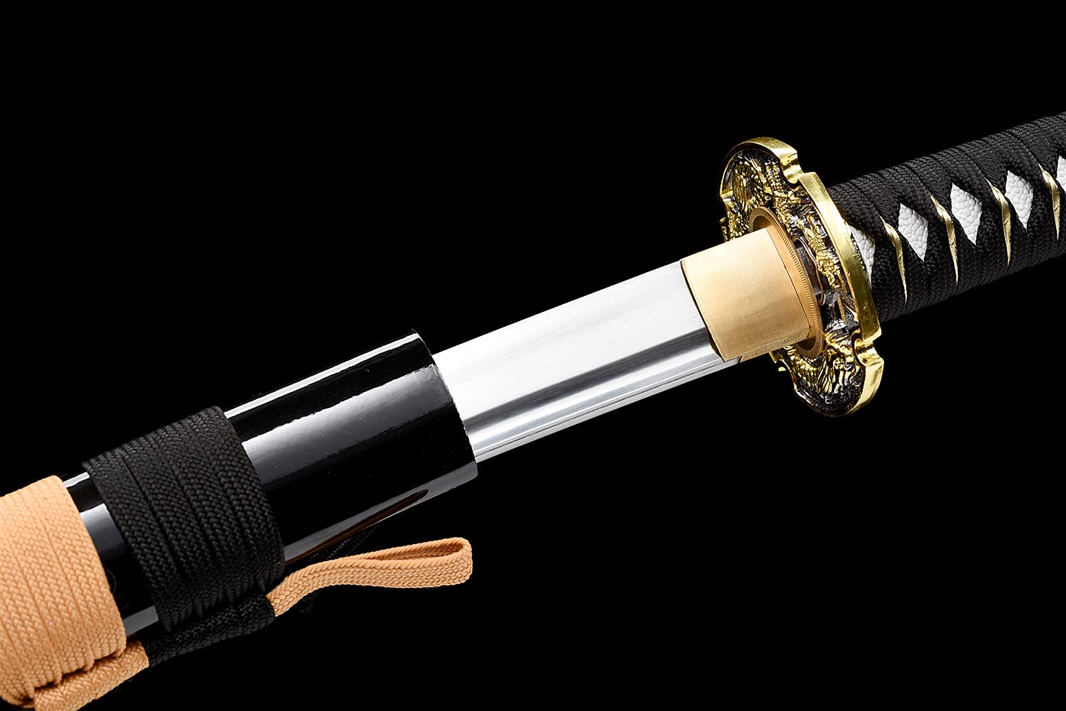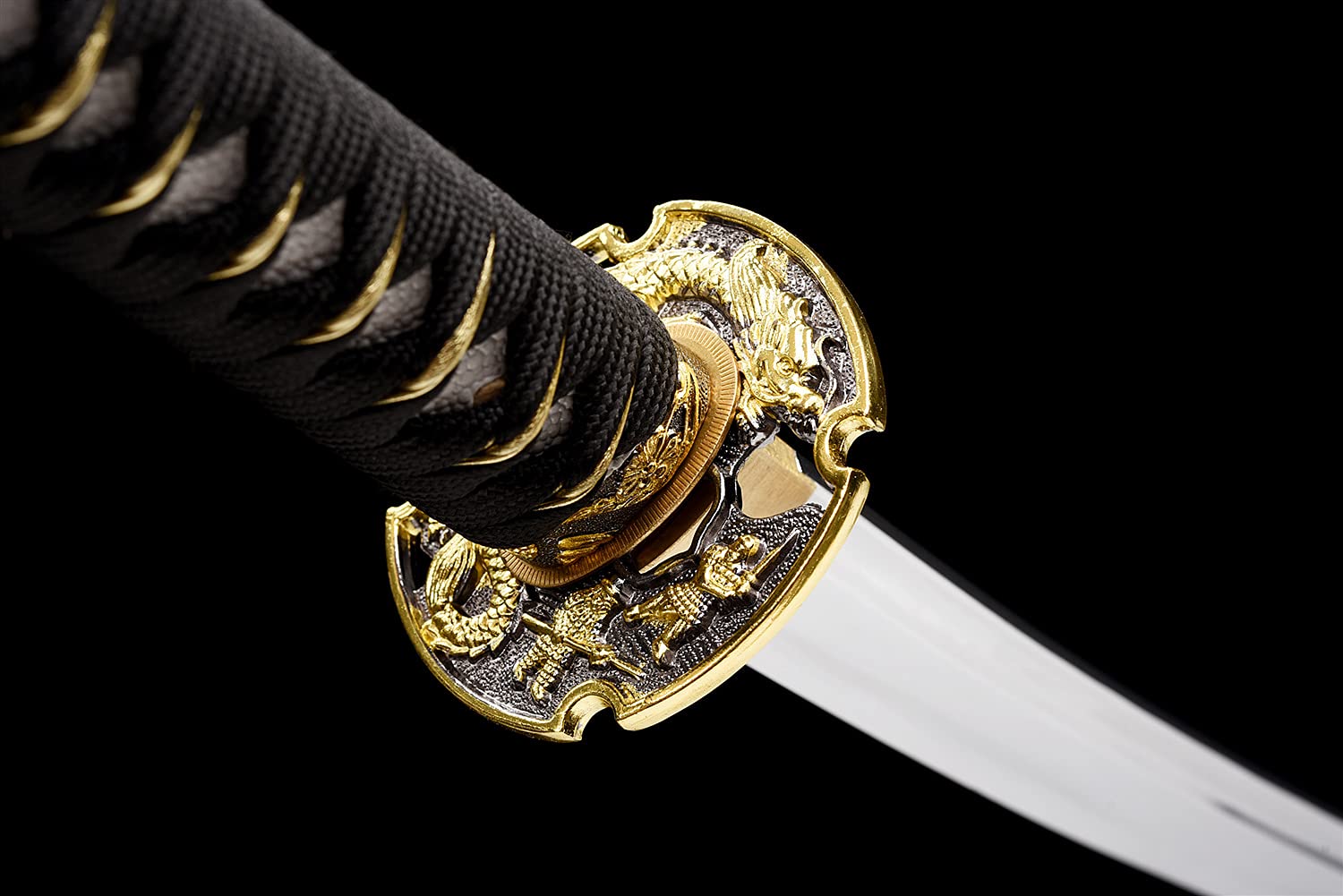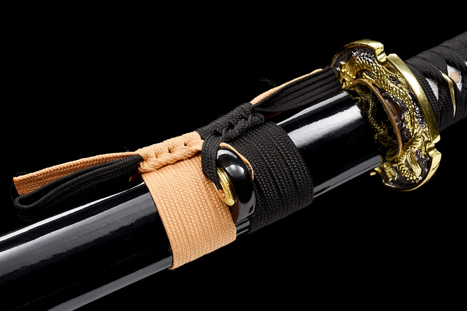 SWORD DETAILS: For a Best and Ideal Sword Collection Piece with Stunning Workmanship, The material used to make this Japanese Sword is T10 High Carbon Steel, following hot forging, cutting, quenching, grinding, and refurbishment. The Blade of this High Quality Premium Chinese Sword has been thoroughly processed with Repeated Heat Tempering and is Forged With Bare Hands to remove impurities.