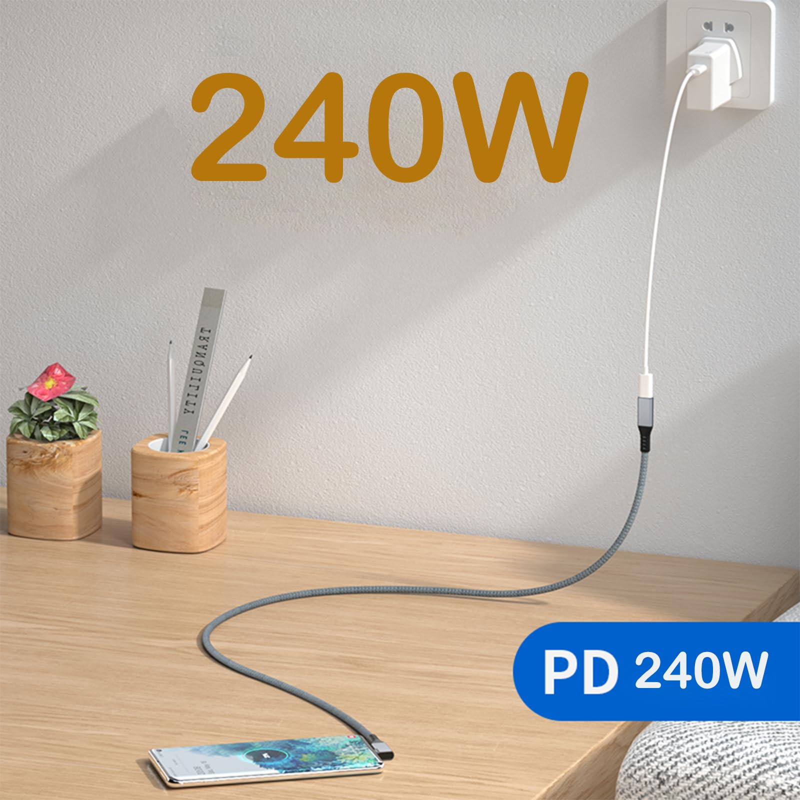 240W PD Fast Charging: Charge anything from phones to laptops with up to 240W(48V/5A) power delivery charging. (Note: Charging speed may be dependent on the host device's charging capability)