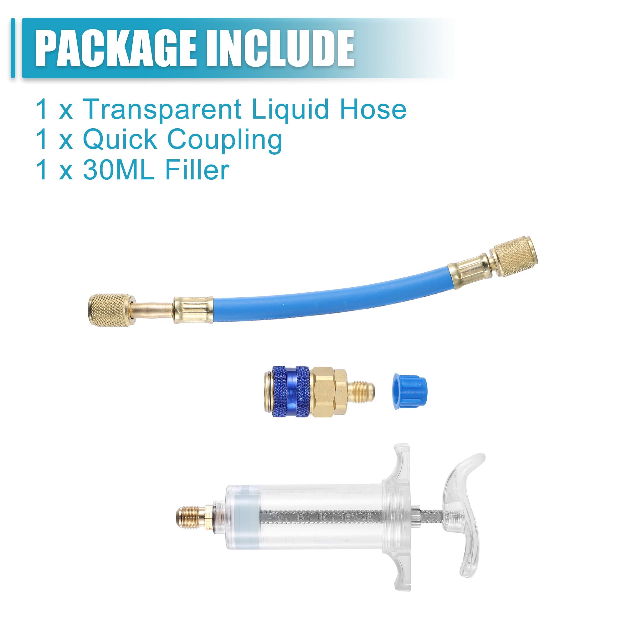 [Function of Oil & Dye Injector] 30ml Push-in type filter, one shot may help and rescue a bad compressor which caused by low oil, no need to rely on other system. This oil dye injector is use with fluorescent dyes aim to monitoring leak, it can suit with all oil types(POE or mineral oil), and all refrigerant types.