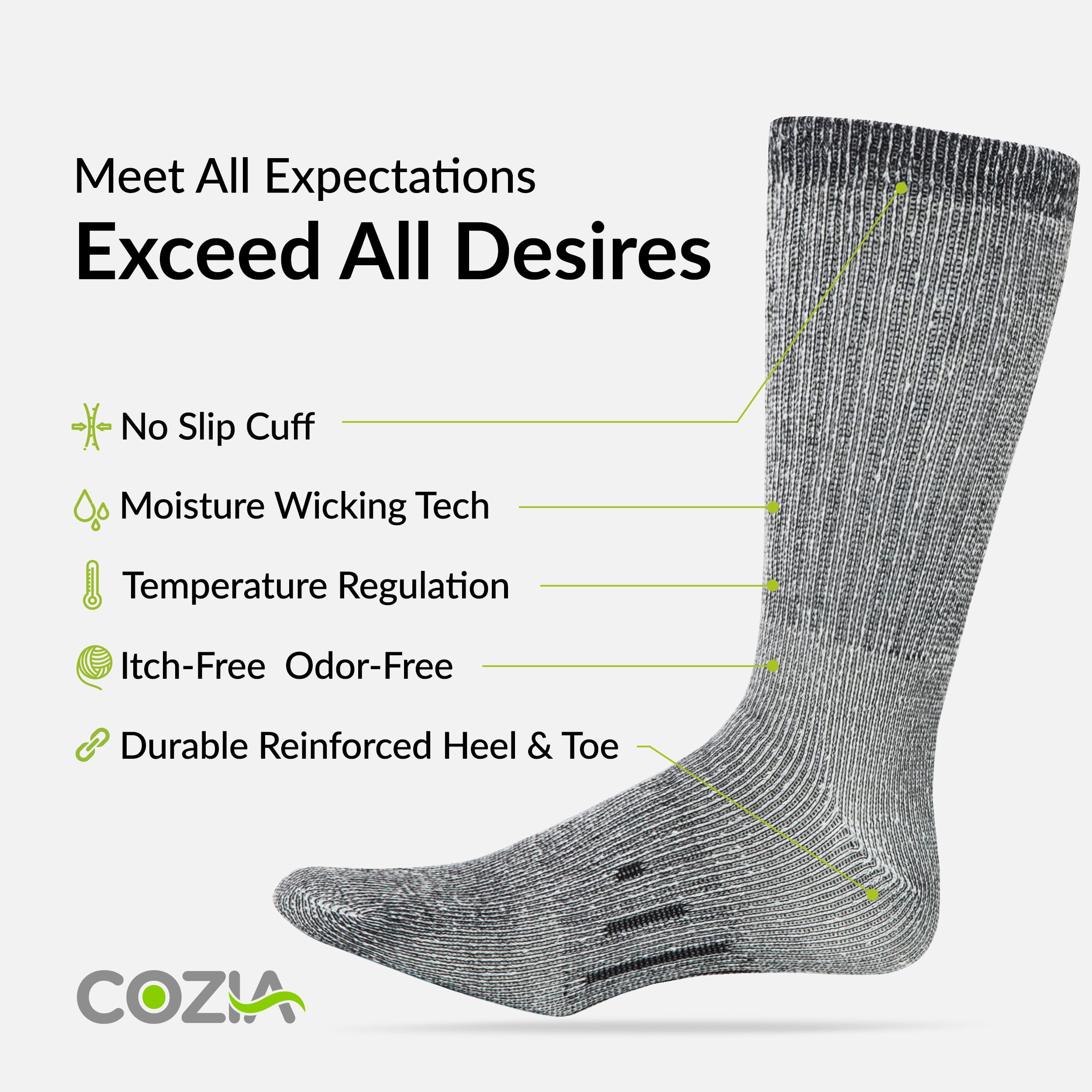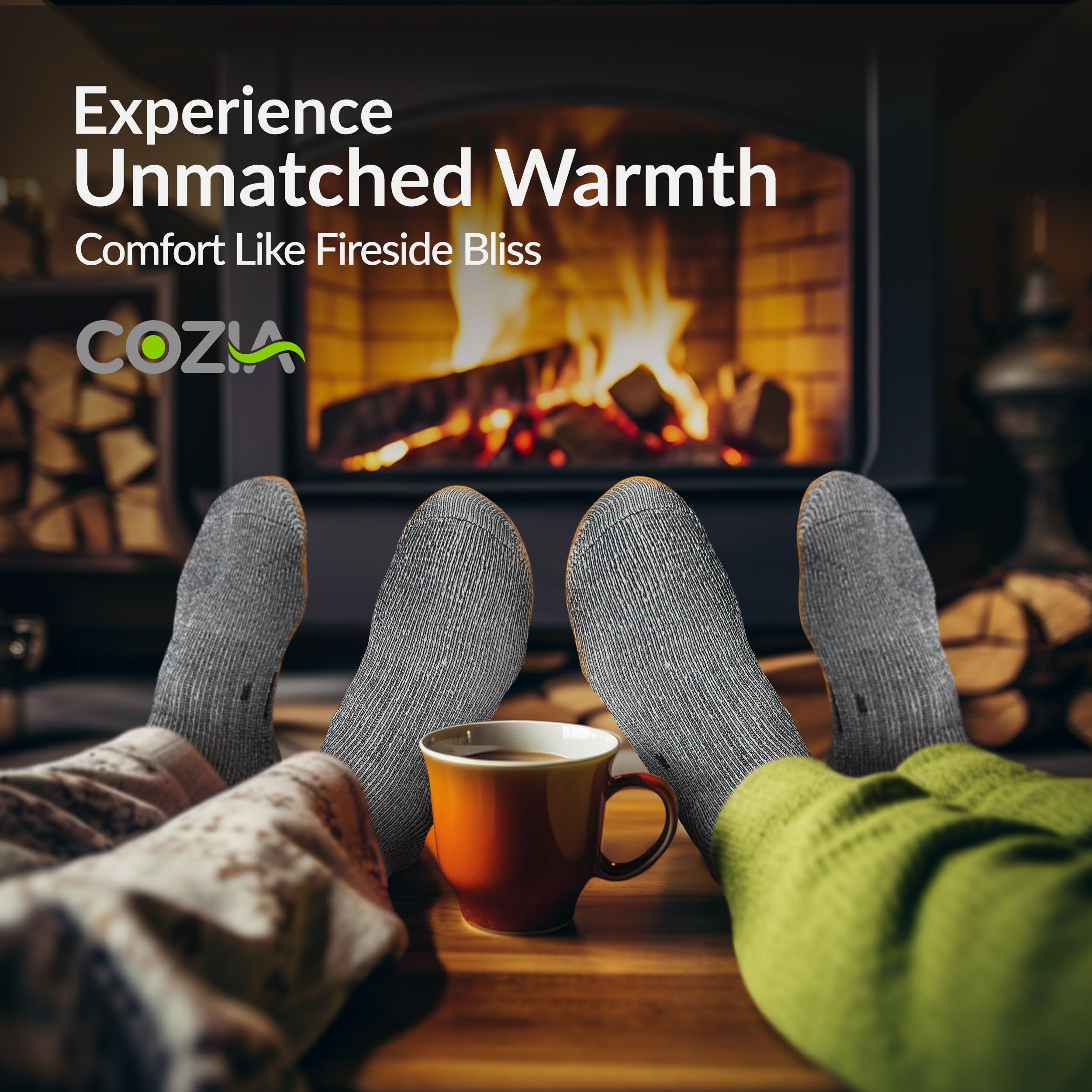 WINTER SOCKS FOR FREEZING FEET – Keep your feet from freezing, protect them from the biting cold winter chill, and enjoy superior comfort with Cozia Thermal Socks for men and women. Our wool socks (mens) have a soft brushed fuzzy inner that provides you with a comfortable fit, gives enhanced cushioning which makes you feel like stepping on a cloud, and helps always keep your feet protected from adverse weather conditions.