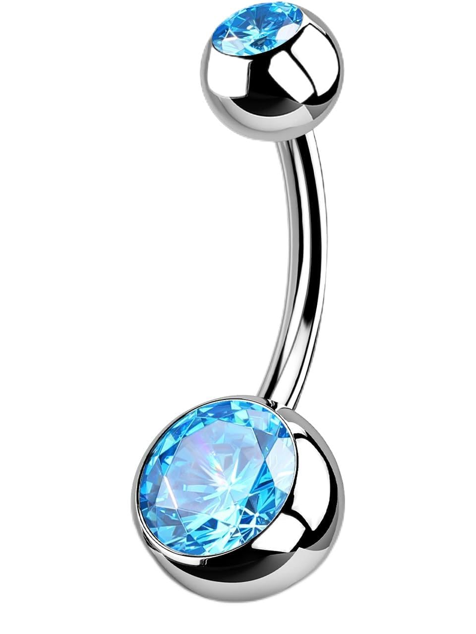 Bright Aqua CZ Sparkle — The vivid aqua gemstone provides a crisp, refreshing shine that pairs beautifully with outfits and complements stylish belly rings for women.