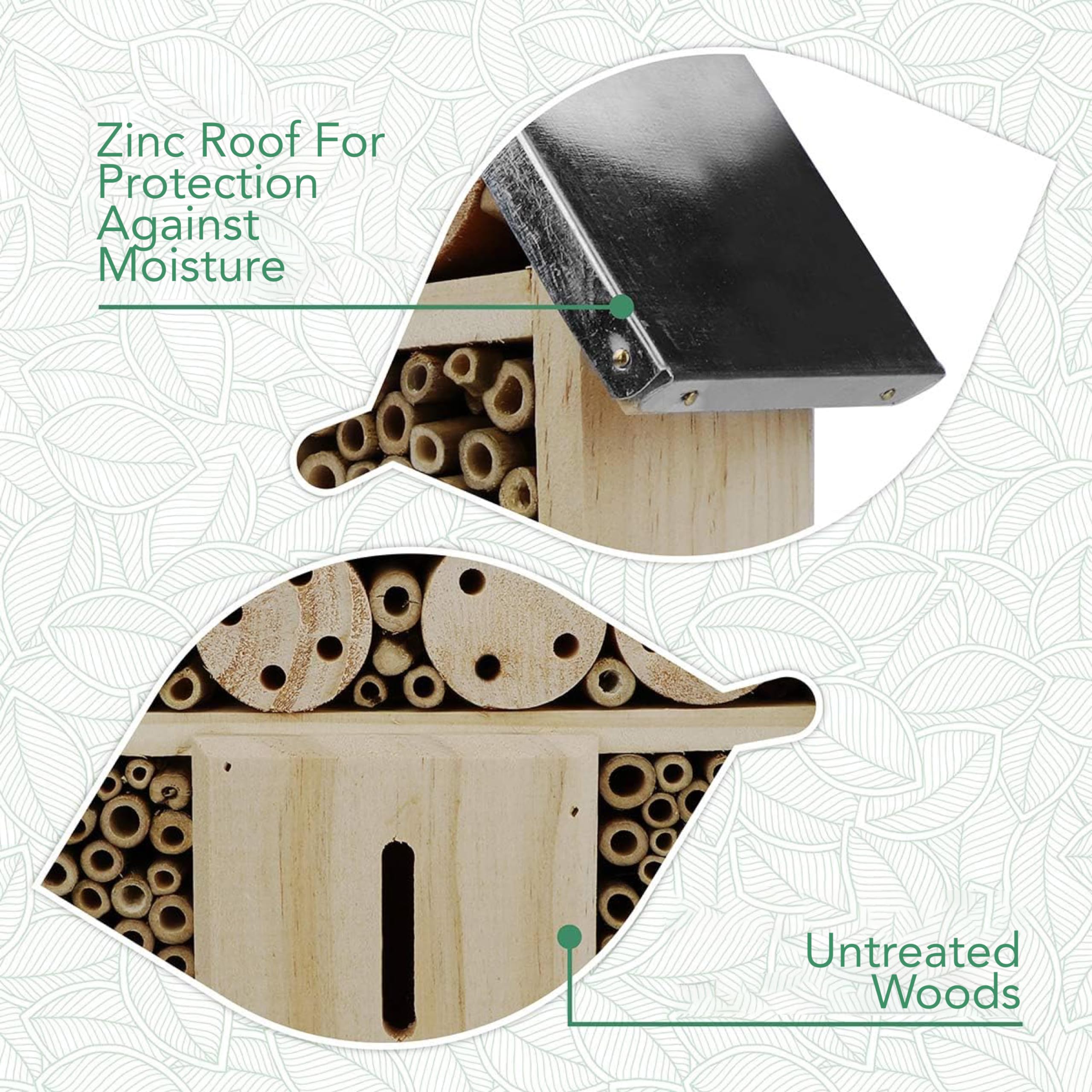 YEAR-ROUND HAVEN: Our insect hotel, crafted from solid wood, is a durable year-round shelter for bees and insects; Dimensions: 23x7x39cm (LxWxH)